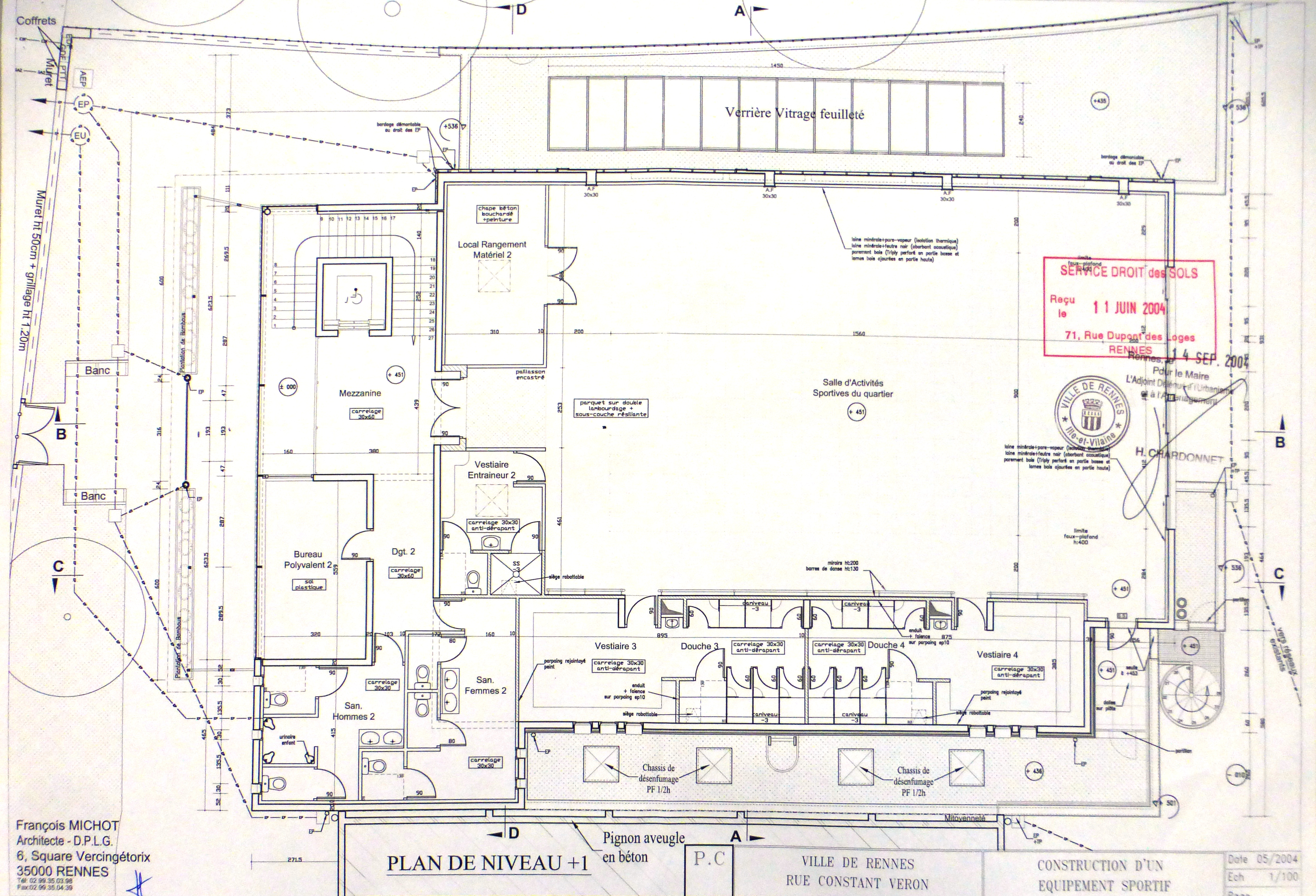 AC Rennes : 1623 W 316. Plan de niveau + 1. F. Michot, 2004.