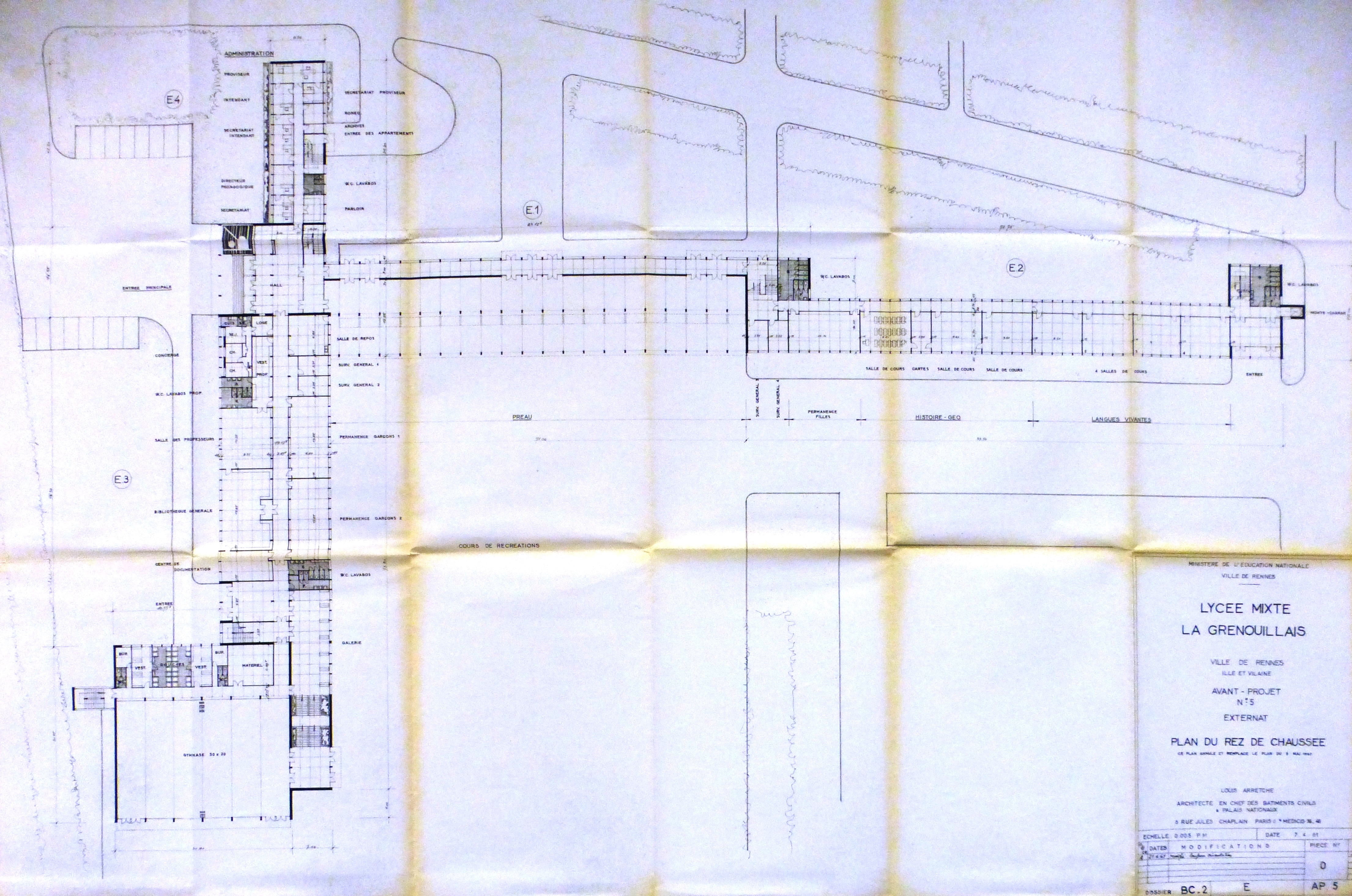 Plan du rez-de-chaussée de l'externat (1961)Immatriculation