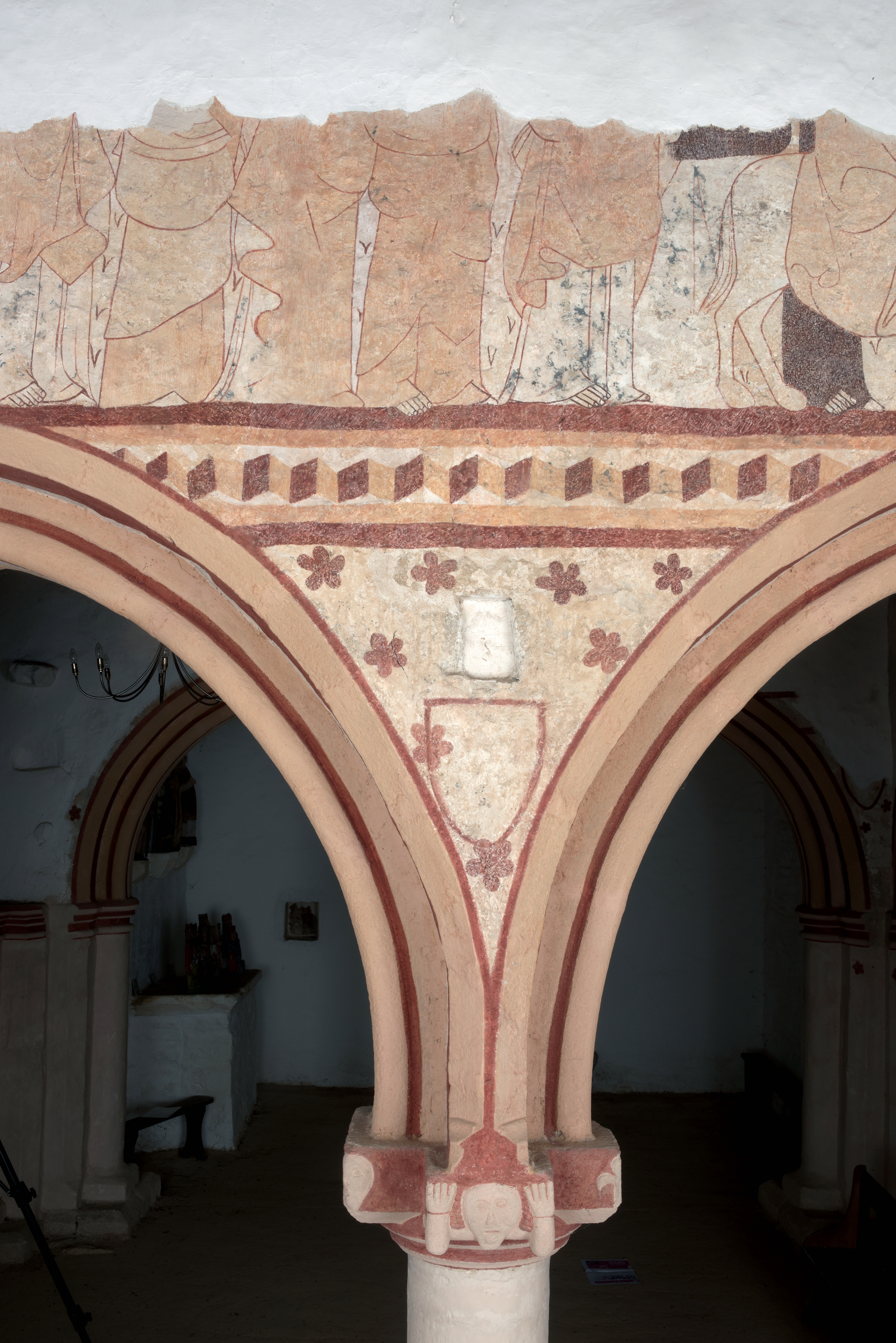 Vue après le chantier de restauration des peintures murales en 2015 . Vue de détail du Transept nordImmatriculation