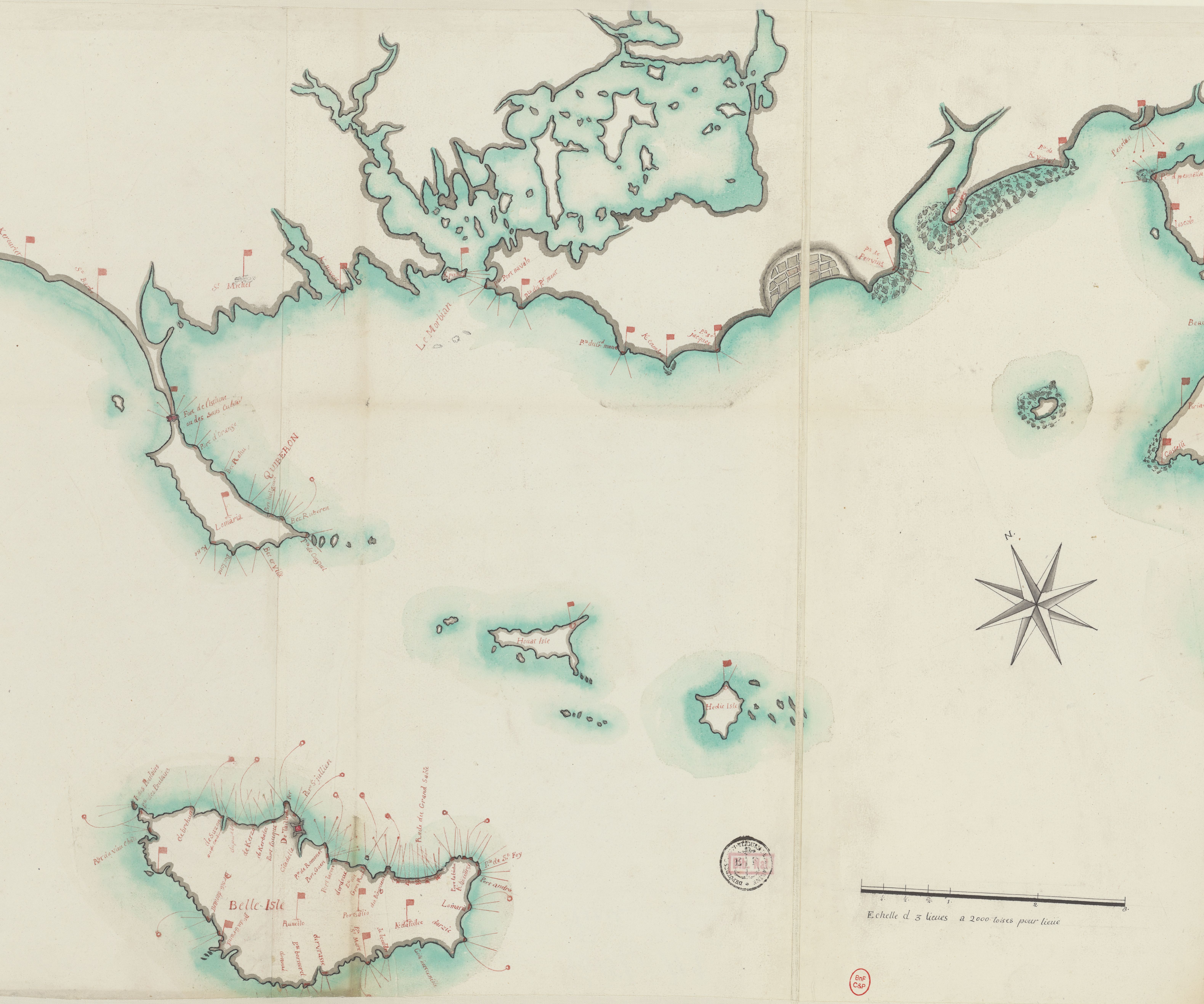 Extrait de la carte, Nantes avec batteries et sémaphores, 1680-1720Immatriculation