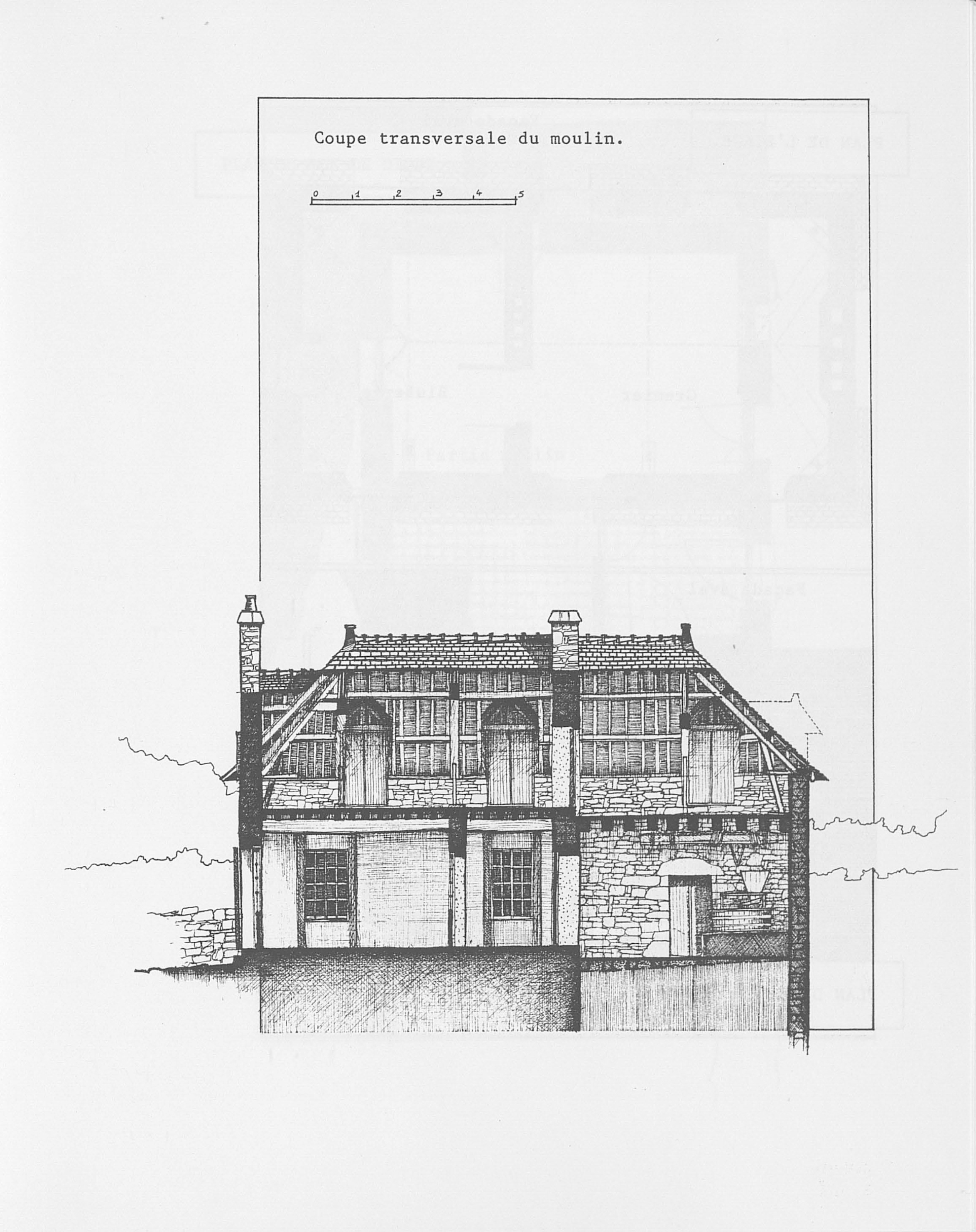 Dessin J-L. Rousseau, TPFE Ecole Nationale Supérieure d'Architecture de Nantes (1985), Coupe longitudinaleImmatriculation