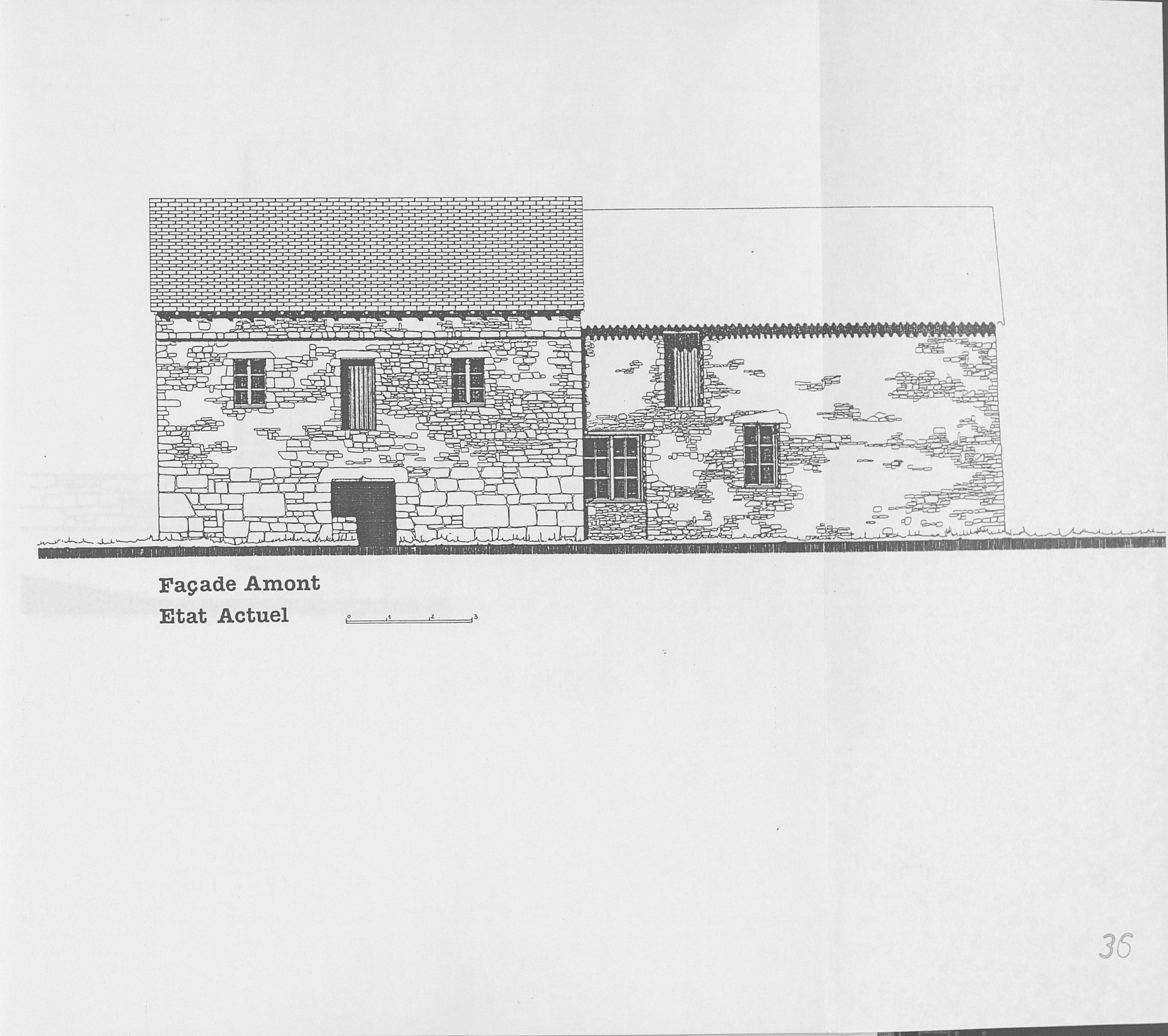 Dessin J-L. Rousseau, TPFE Ecole Nationale Supérieure d'Architecture de Nantes (1985), Façade amont, moulin et ancienne annexeImmatriculation