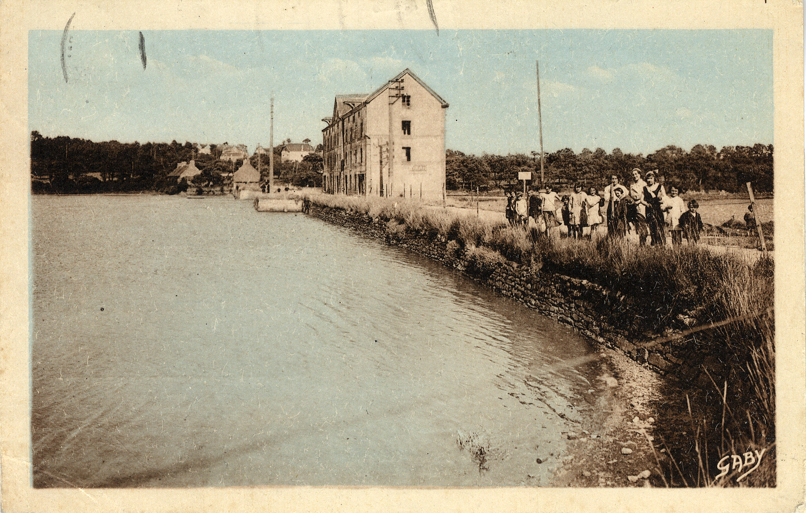 Carte postale colorisée "Gaby", Minoterie du Plessis, vue amont, Archives municipales de Lanester,Immatriculation
