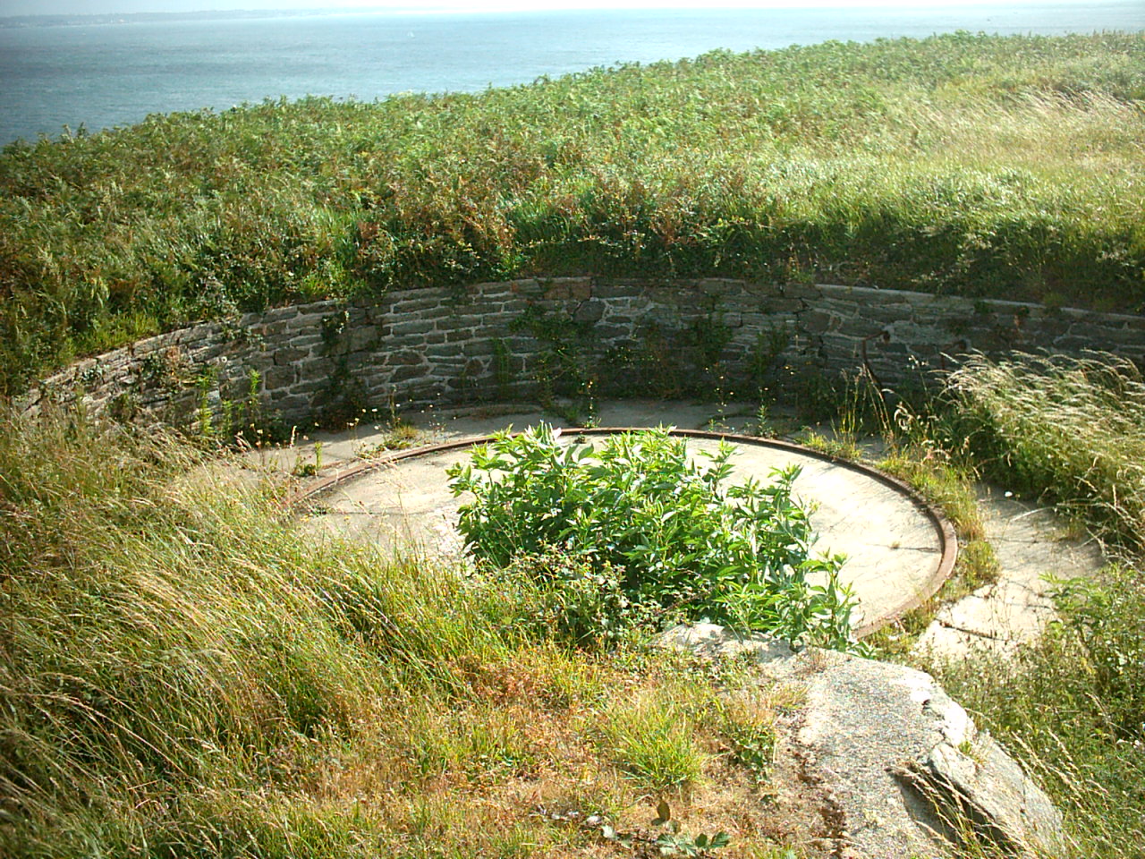 Groix, batterie du Bas-Grognon, plate-forme de canon de 24 cm en 2007.Immatriculation