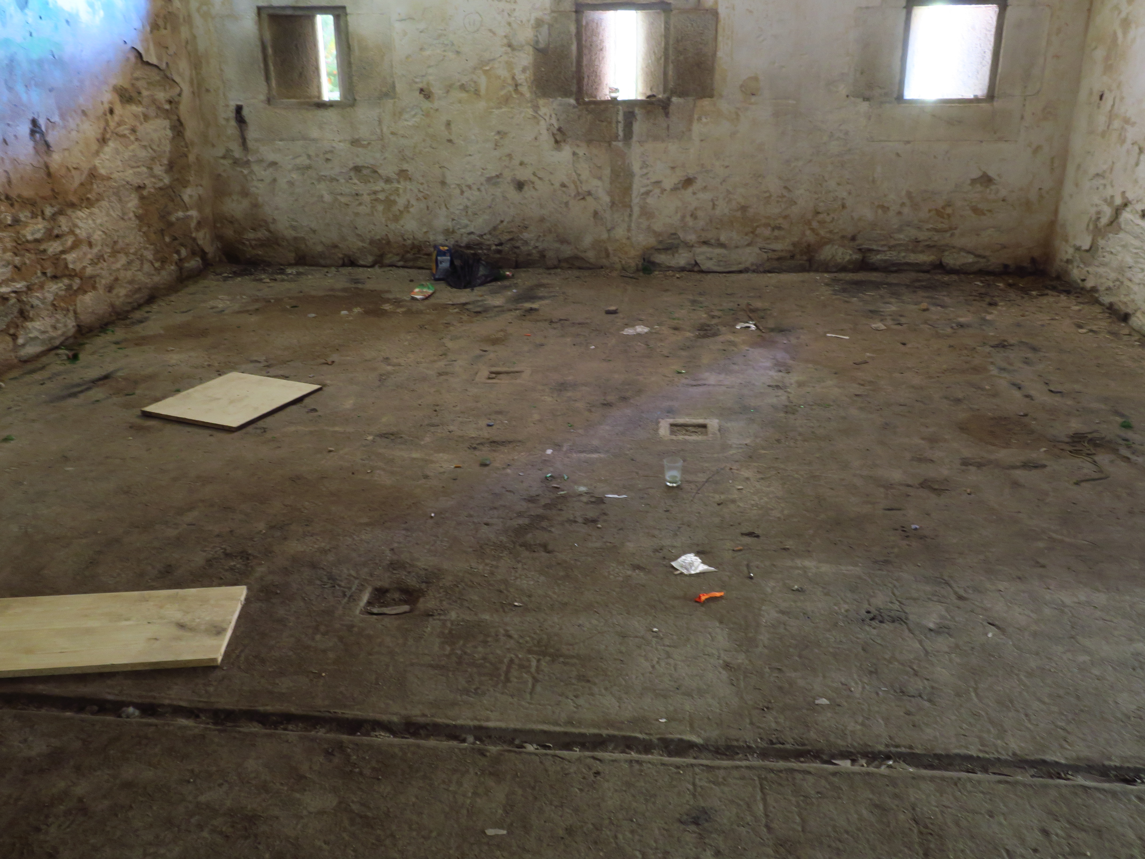 Groix, batterie du Bas-Grognon, corps de garde crénelé, chambrée, sol avec trous de poteaux.Immatriculation
