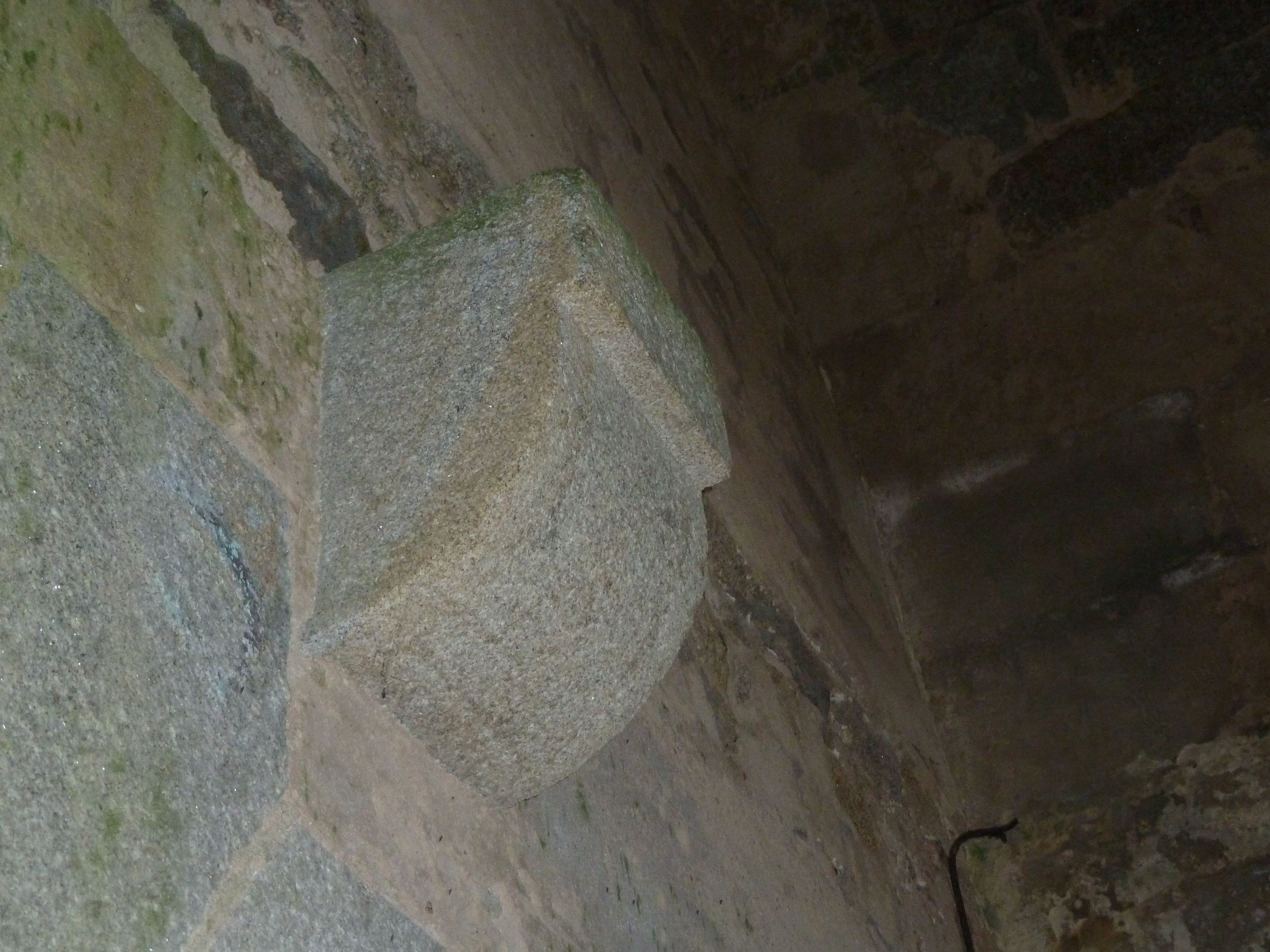 Hoedic, fort central, magasin à poudre, chambre de stockage, détail d'un corbeau du plancher de l'étage.Immatriculation