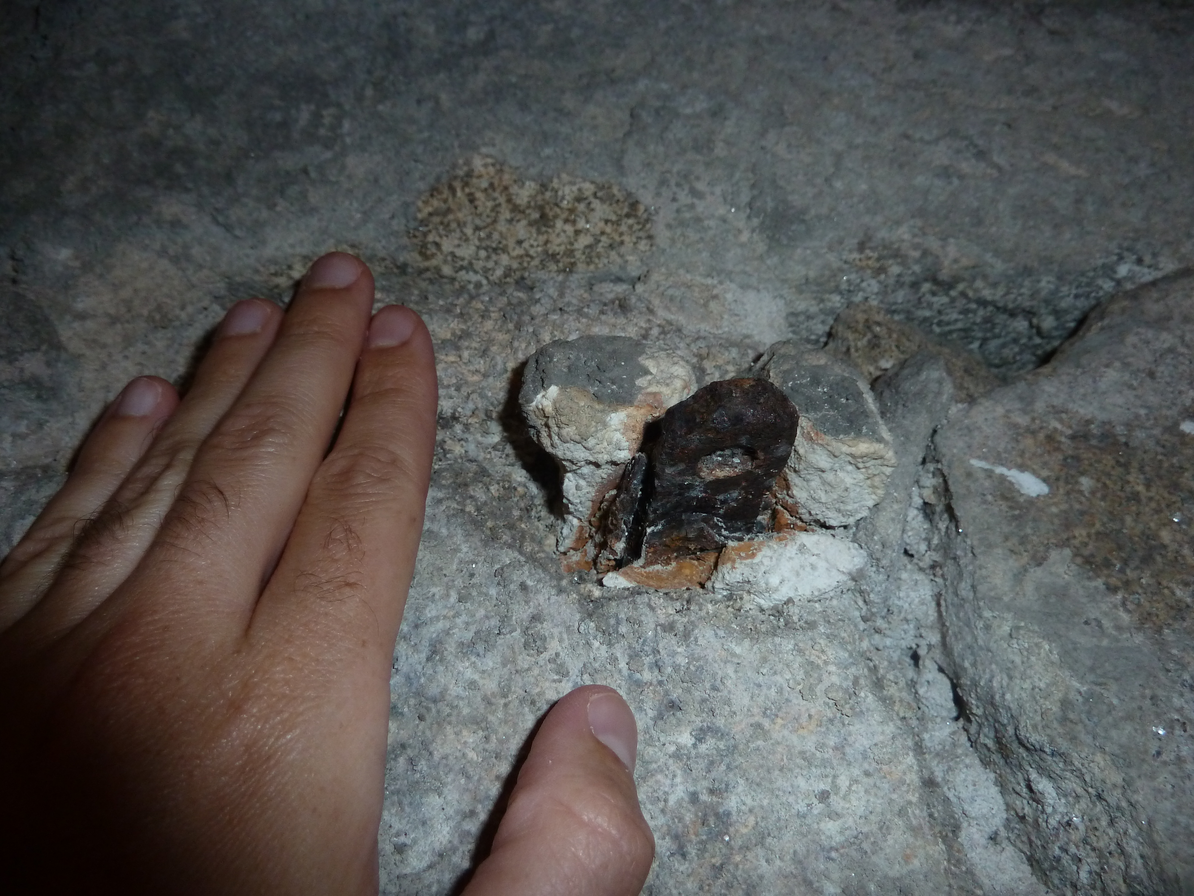 Hoedic, fort central, caserne à l'épreuve, détail de piton de planche à bagages.Immatriculation