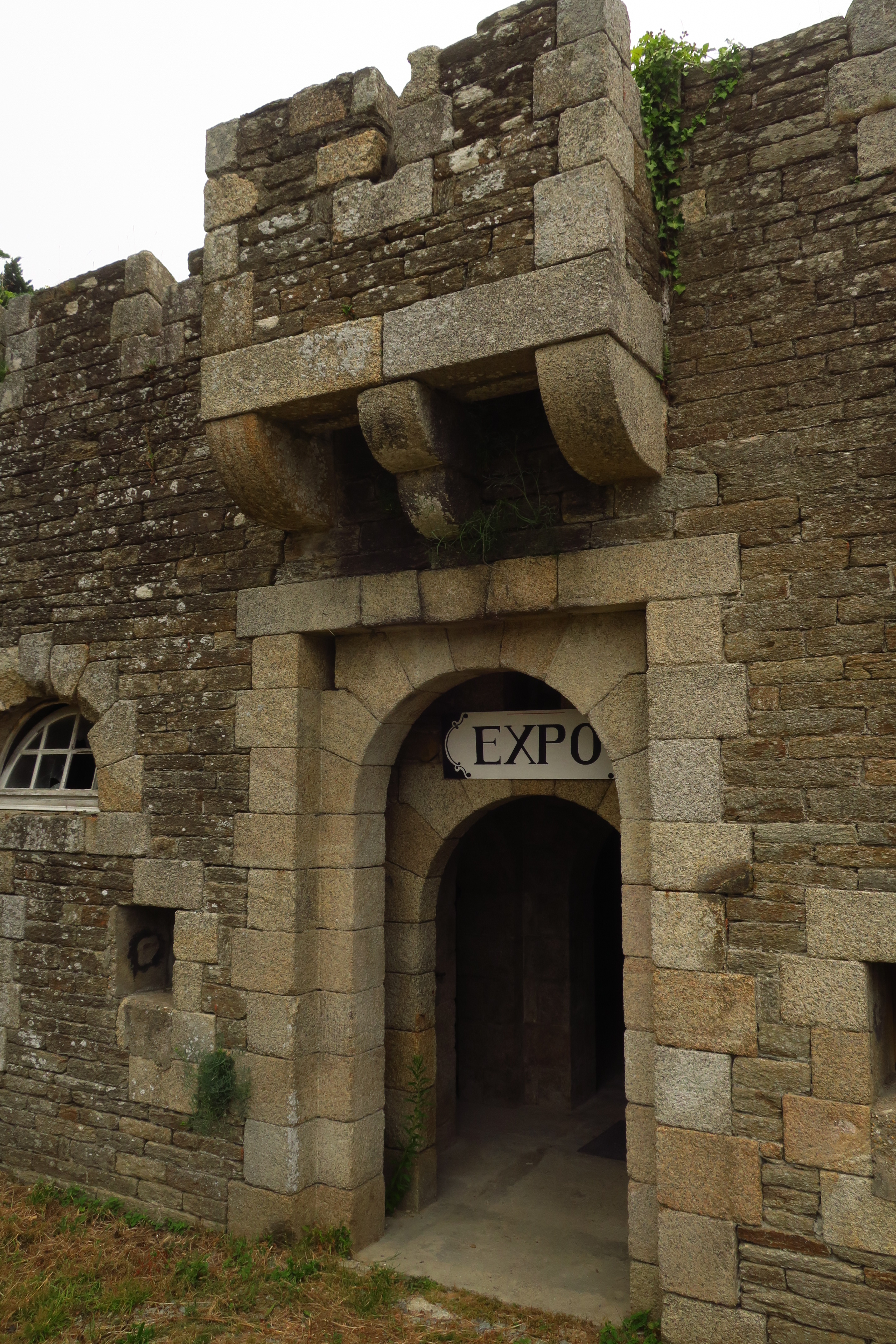 Groix, batterie du Gripp, corps de garde crénelé, porte.Immatriculation
