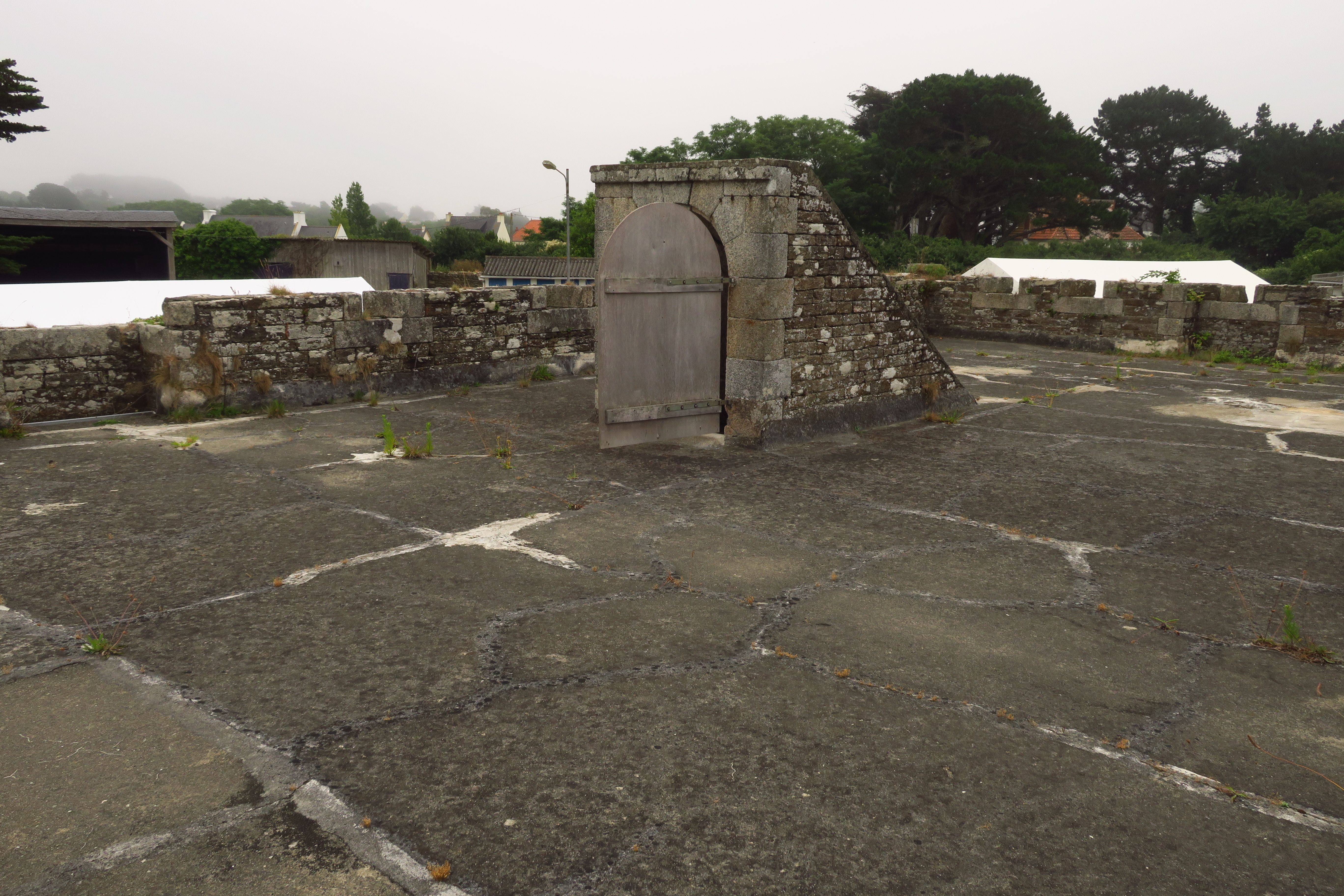 Groix, batterie du Gripp, corps de garde crénelé, terrasse.Immatriculation