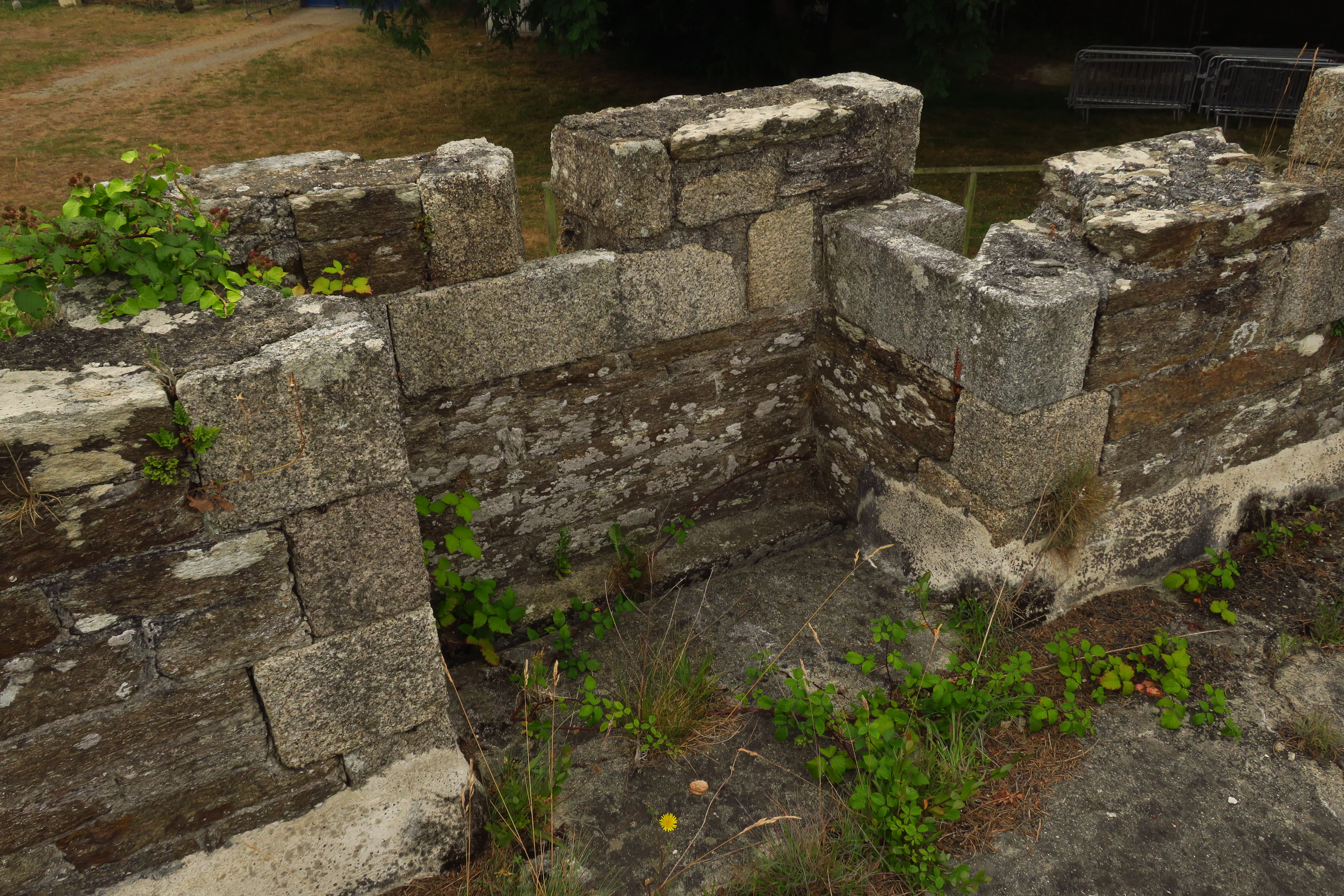 Groix, batterie du Gripp, corps de garde crénelé, détail d'une bretèche de la terrasse.Immatriculation