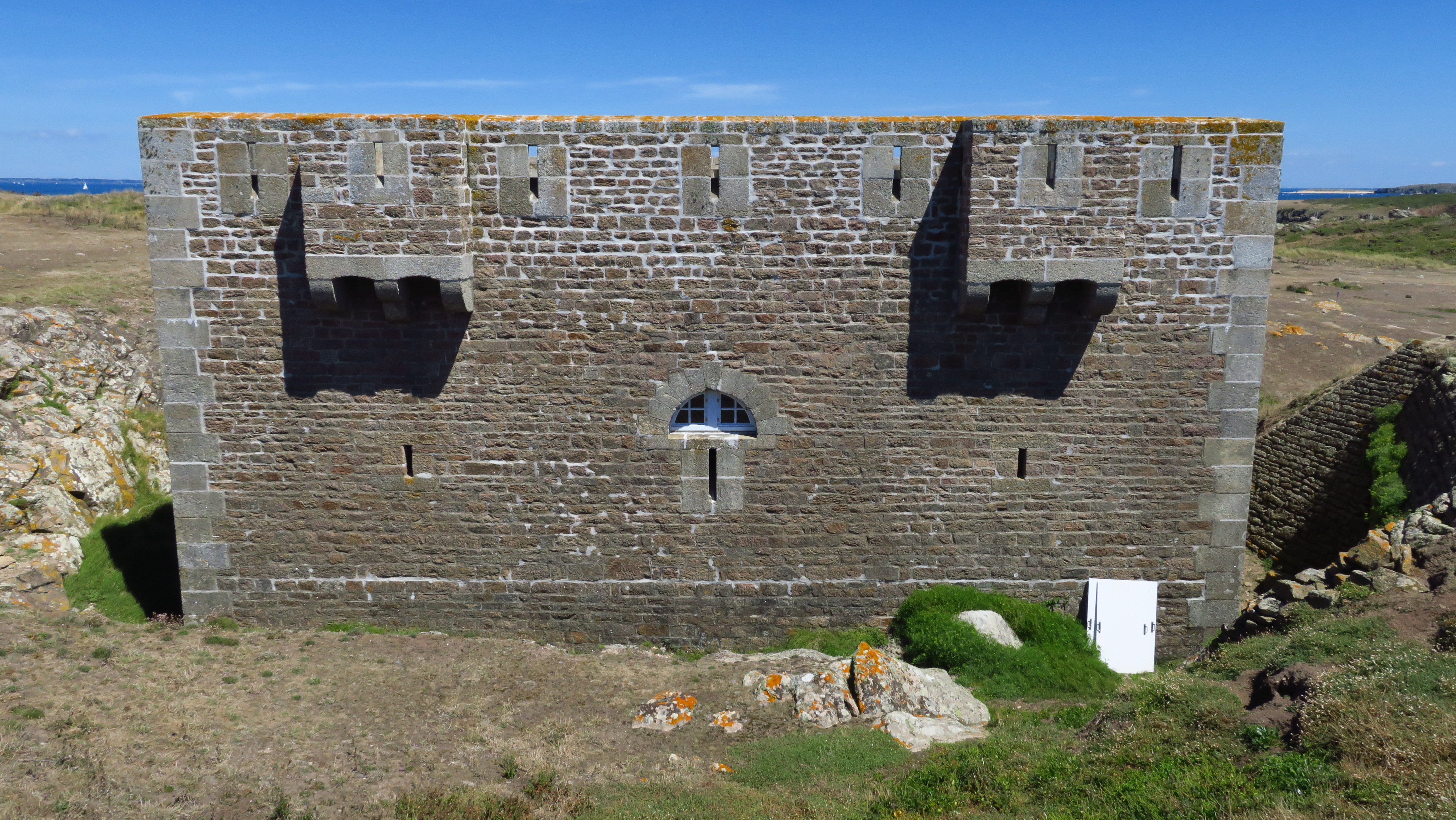Île-d'Houat, batterie du Béniguet, corps de garde crénelé, façade ouest.Immatriculation