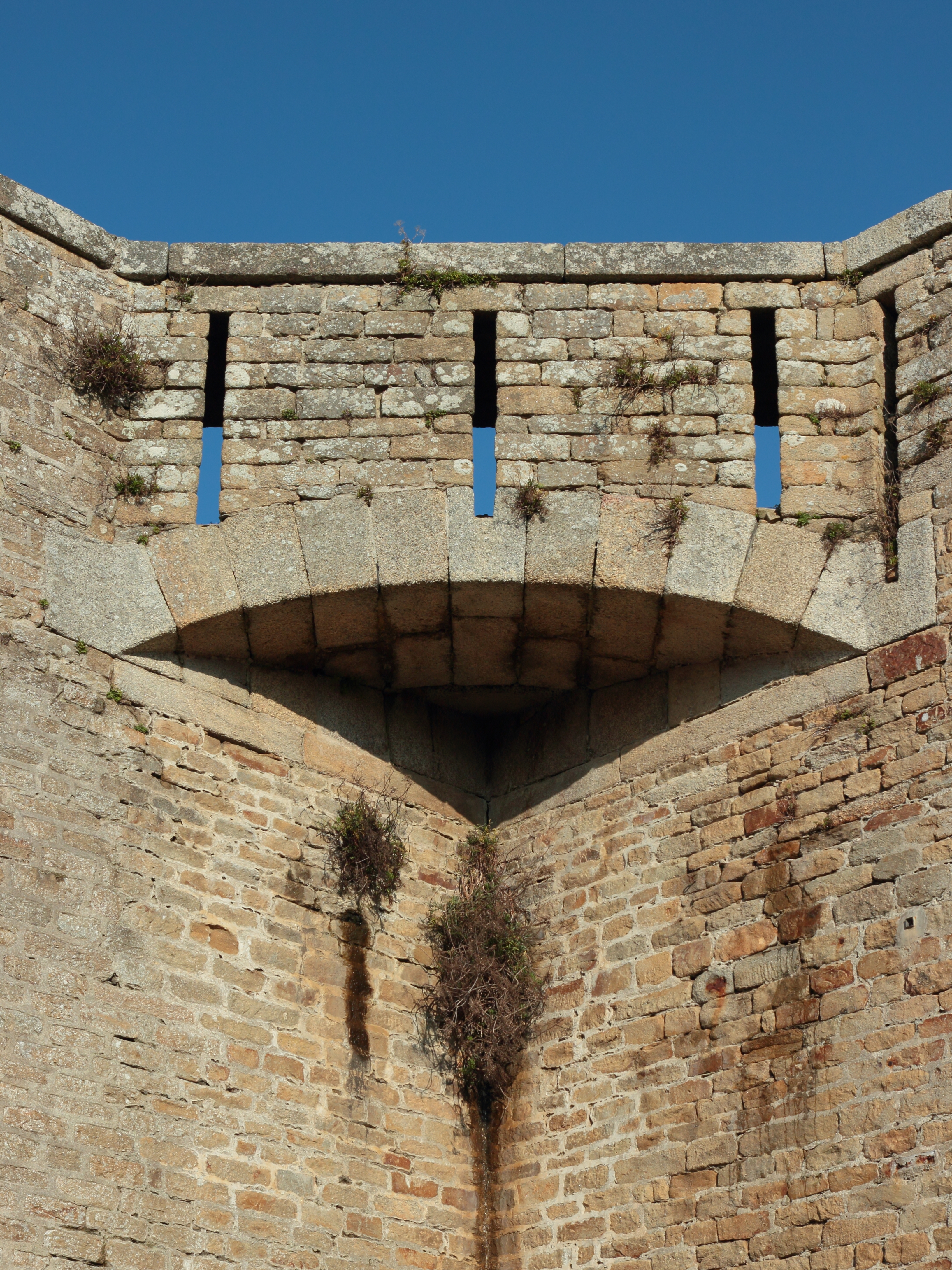Saint-Pierre-Quiberon, fort de Penthièvre, enceinte, créneau de pied de la jonction du redan et de la branche sud-ouest.Immatriculation