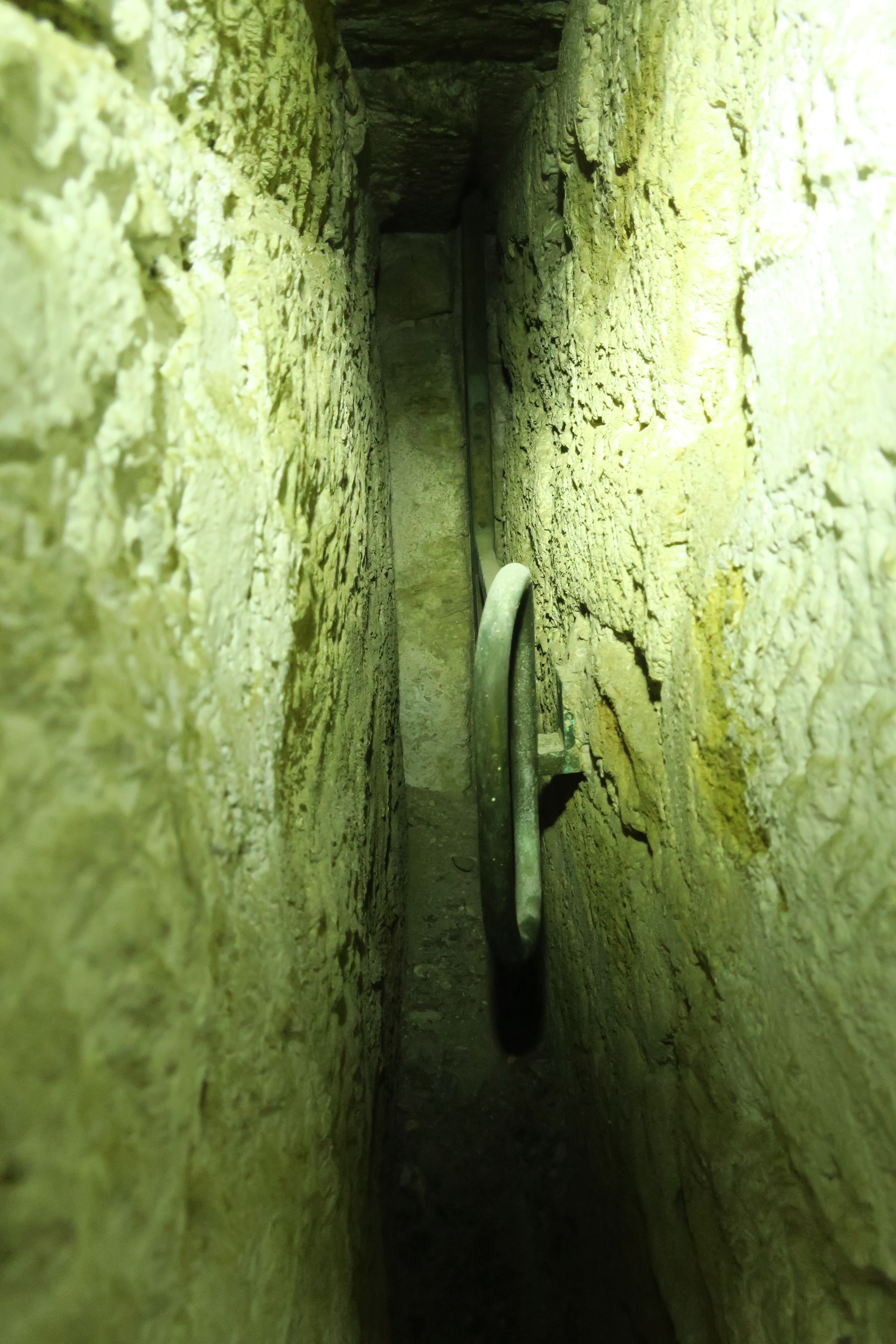 Le Palais, citadelle, magasin à poudre de l'Avancée, évent d'aération, système d'obturation toujours en place.Immatriculation