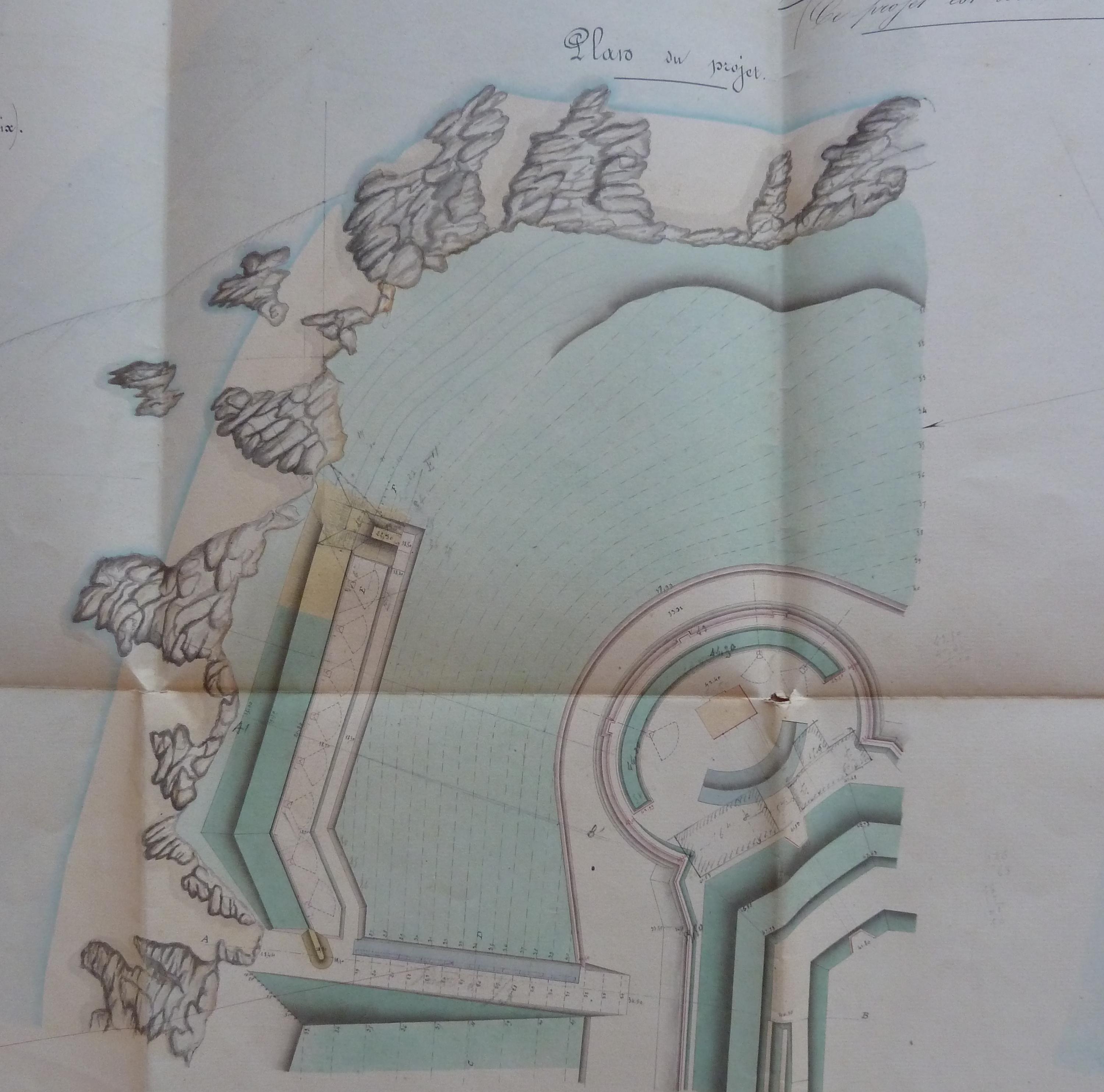 Service historique de la Défense, département Armée de Terre, Vincennes. Archives du Génie ; Article 8, Places françaises et d'Algérie : 1 VH 1475, Place de Port-Louis, projets et dépenses annuels, 1857-1875. Direction du Génie de Brest, Place de Port-Louis, feuille n° 2 des projets pour 1861-1862, compléter l'installation des portions du fort La Croix organisées comme batteries de côtes, 10 décembre 1860.