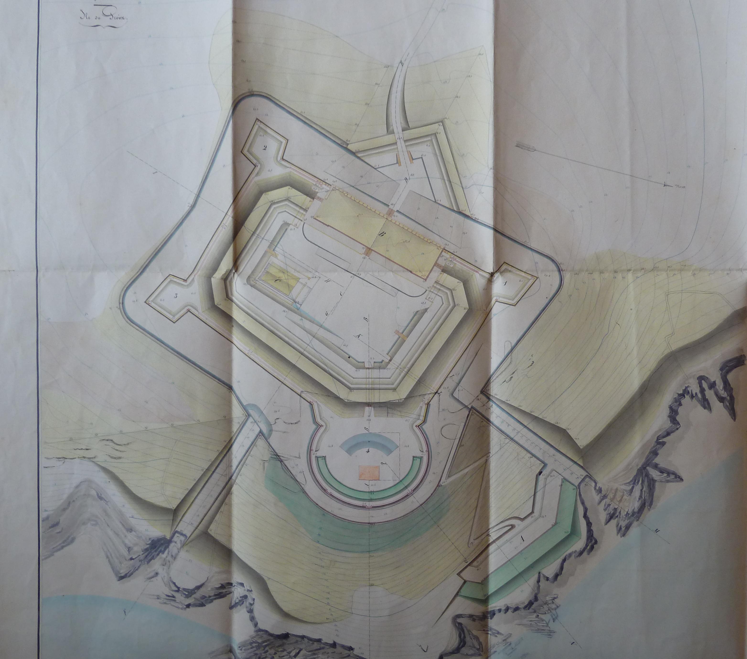 Service historique de la Défense, département Armée de Terre, Vincennes. Archives du Génie ; Article 8, Places françaises et d'Algérie : 1 VH 1474, Place de Port-Louis, projets et dépenses annuels, 1847-1856. Direction du Génie de Nantes, Place de Port-Louis, feuille n° 6 des projets pour 1847, travaux extraordinaires pour la défense des côtes, 22 novembre 1846.