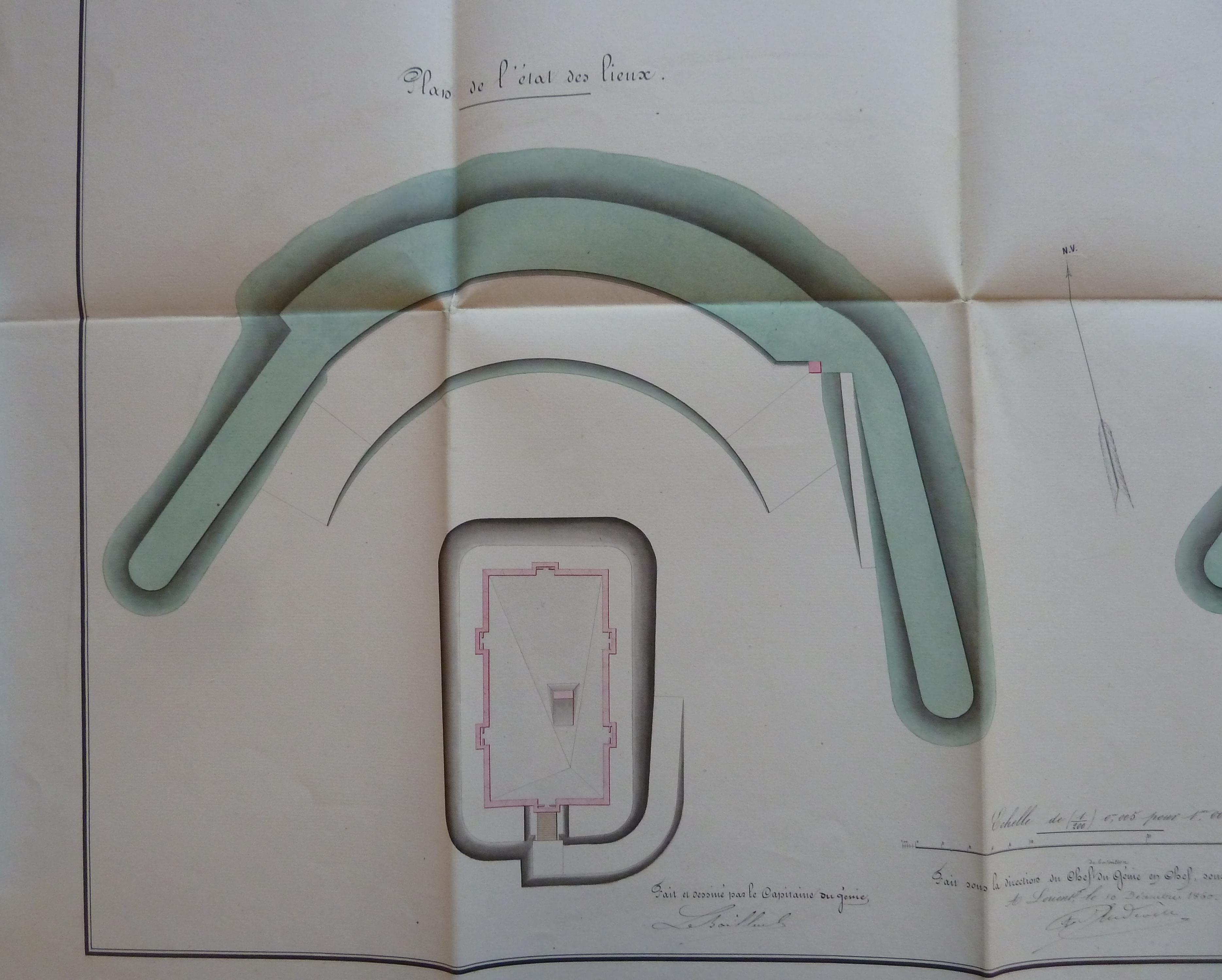 Service historique de la Défense, département Armée de Terre, Vincennes. Archives du Génie ; Article 8, Places françaises et d'Algérie : 1 VH 1475, Place de Port-Louis, projets et dépenses annuels, 1857-1875. Direction du Génie de Brest, Place de Port-Louis, feuille n° 3 des projets pour 1861-1862, organiser la batterie de Grognon pour y placer le nouvel armement, 10 décembre 1860.