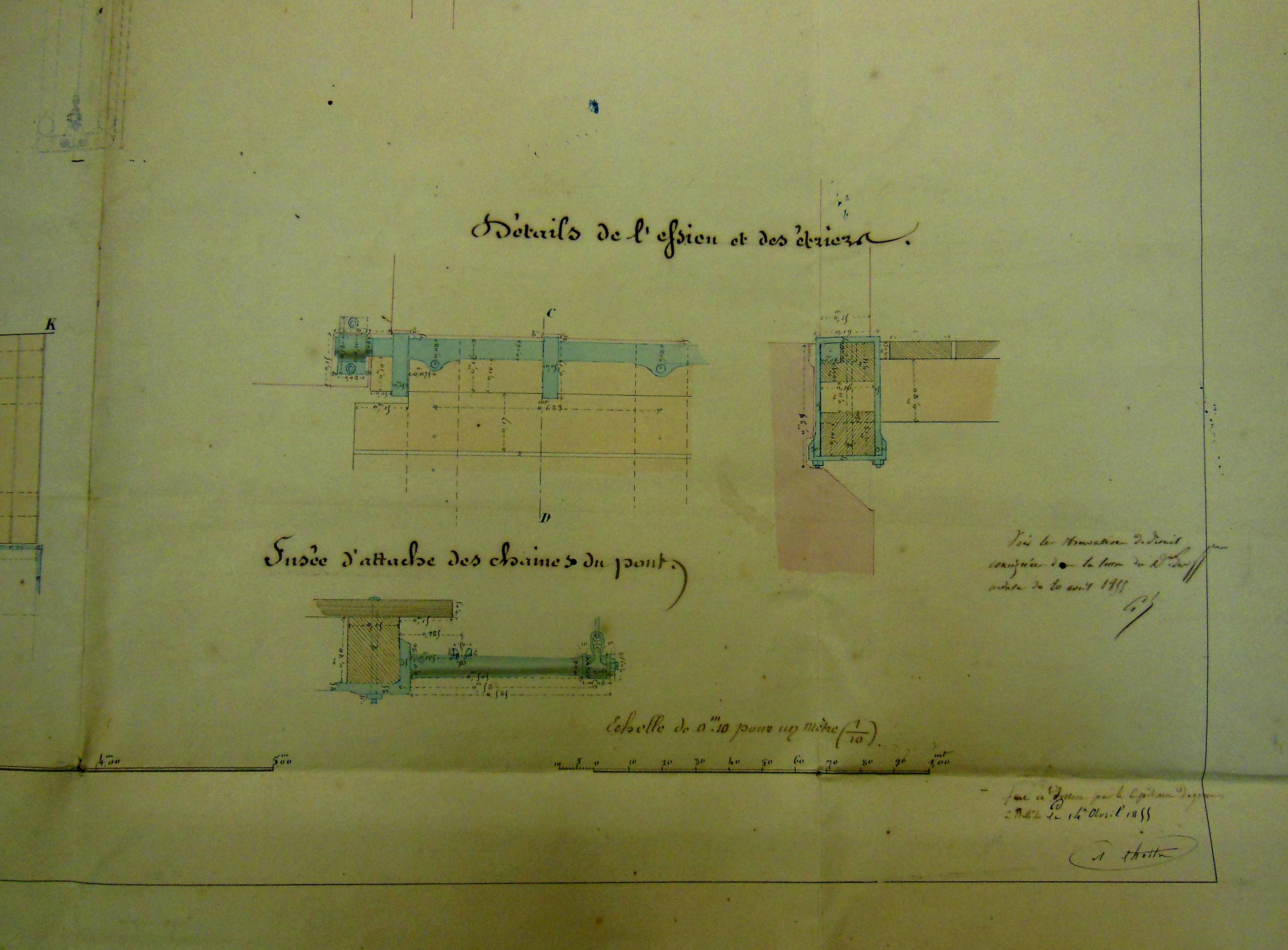 Service historique de la Défense, Département Marine, Lorient. Archives de la Place et du Génie de Belle-Île-en-Mer ; Sous-série 4 S3, archives de la Place de Houat-Hoedic : 4 S3 5, Projets, Houat. Direction du Génie de Brest, Place de Houat-Hoedic, croquis relatif à l'établissement d'un pont-levis dans les forts de Houat et d'Hoedic, 14 avril 1855.