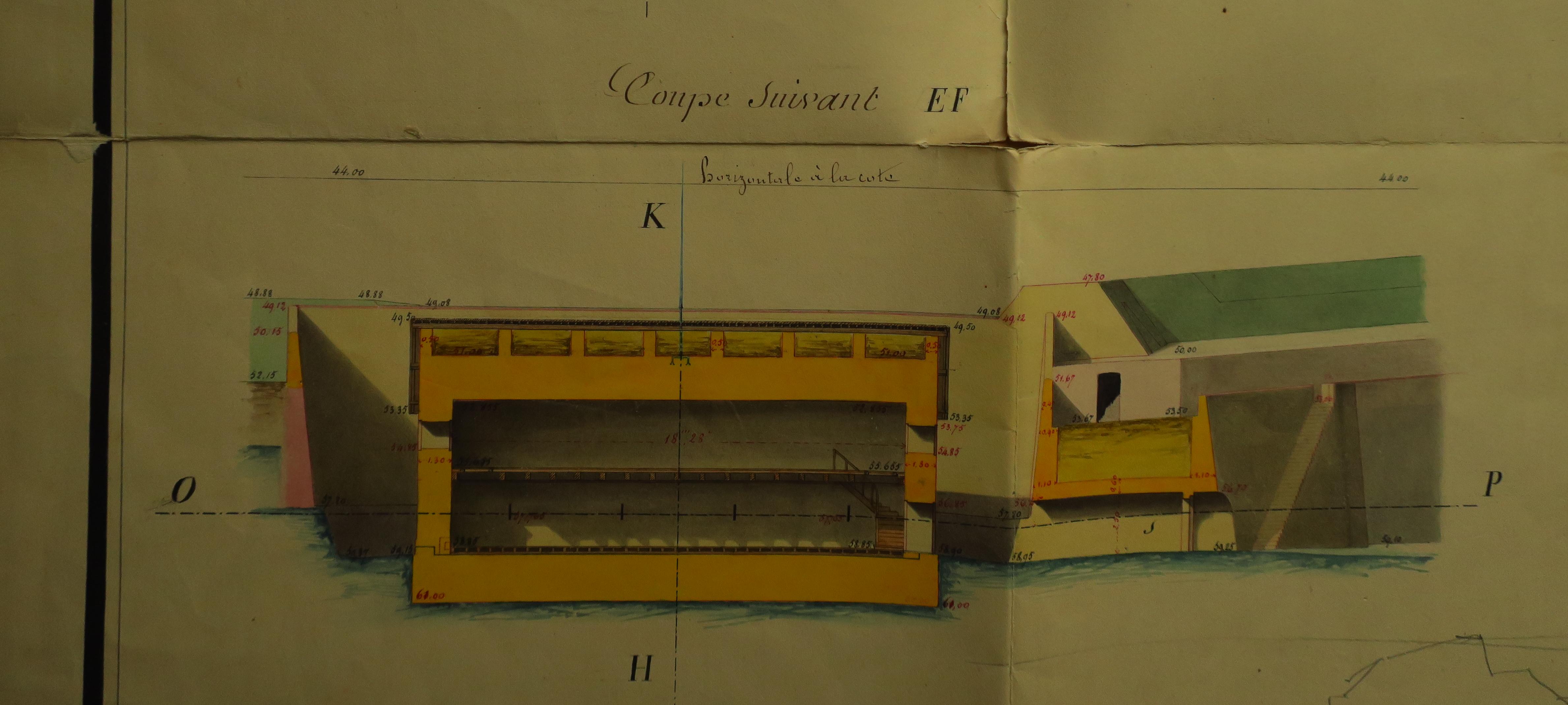 Service historique de la Défense, département Armée de Terre, Vincennes. Archives du Génie ; Article 8, Places françaises et d'Algérie : 1 VH 294, Place de Belle-Île-en-Mer, projets et dépenses annuels, 1854-1857. Direction du Génie de Brest, Place de Belle-Ile, feuille n° 9 des projets supplémentaires pour 1856-1857, magasins à poudre, 20 décembre 1856.