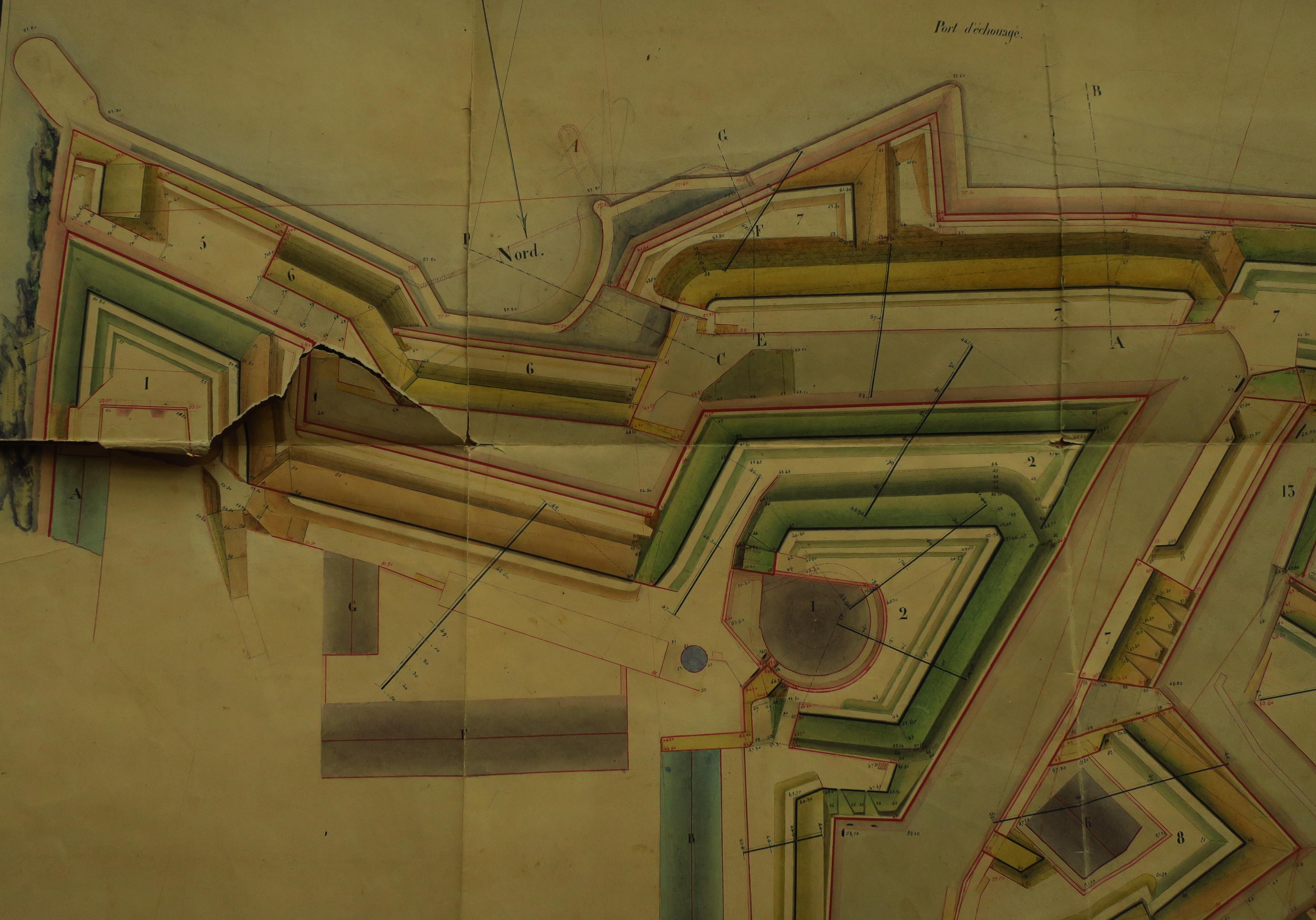 Service historique de la Défense, département Armée de Terre, Vincennes. Archives du Génie ; Article 8, Places françaises et d'Algérie : 1 VH 290, Place de Belle-Île-en-Mer, projets et dépenses annuels, 1837-1842. Direction du Génie de Nantes, Place de Belle-Ile, feuille n°2 des projets pour 1839, amélioration de la citadelle, 11 décembre 1838.