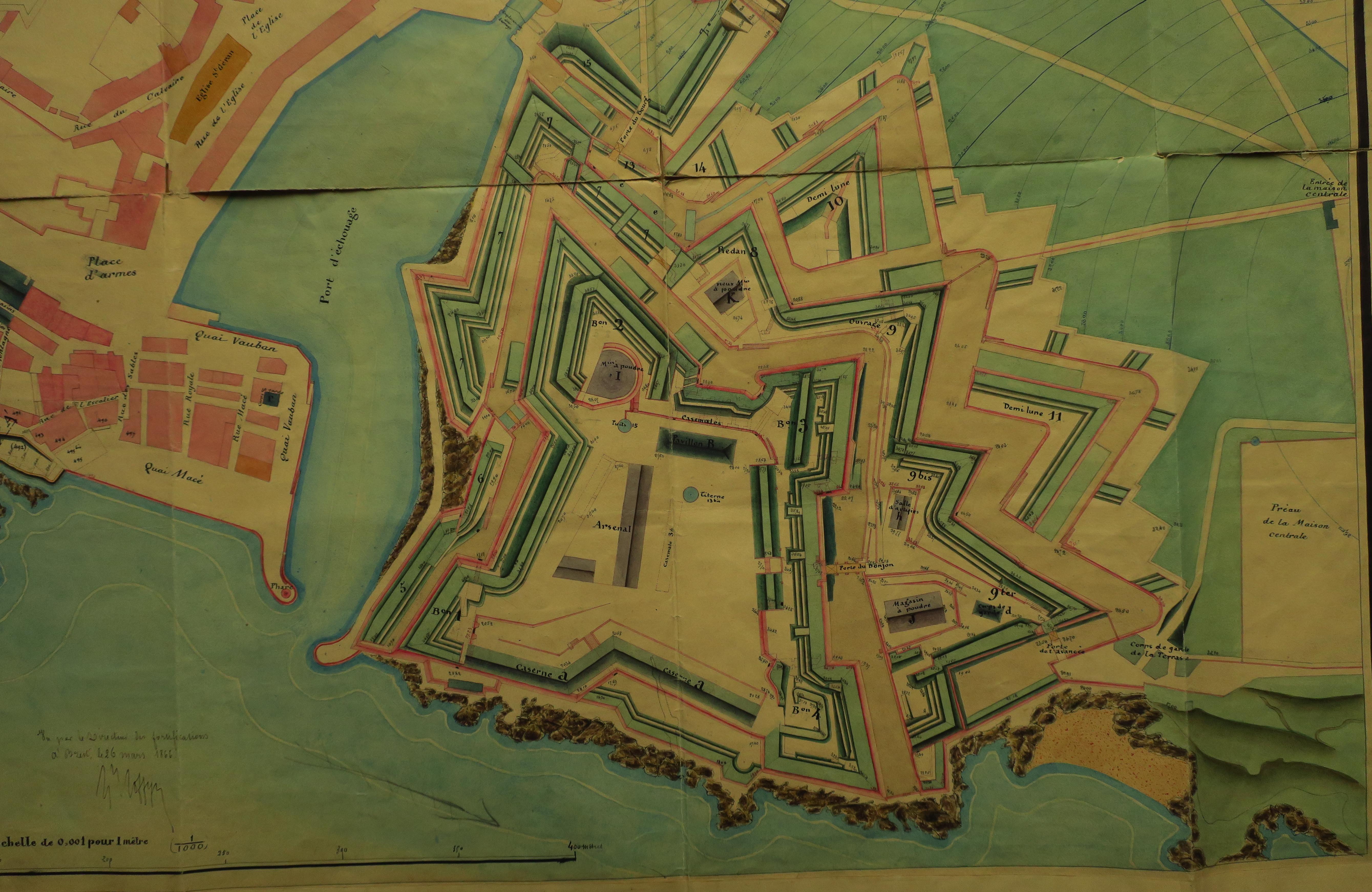 Service historique de la Défense, département Armée de Terre, Vincennes. Archives du Génie ; Article 8, Places françaises et d'Algérie : 1 VH 297, Place de Belle-Île-en-Mer, projets et dépenses annuels, 1862-1875. Direction du Génie de Brest, Place de Belle-Ile, feuille n° 2 des projets pour 1866-1867, 7 mars 1866.