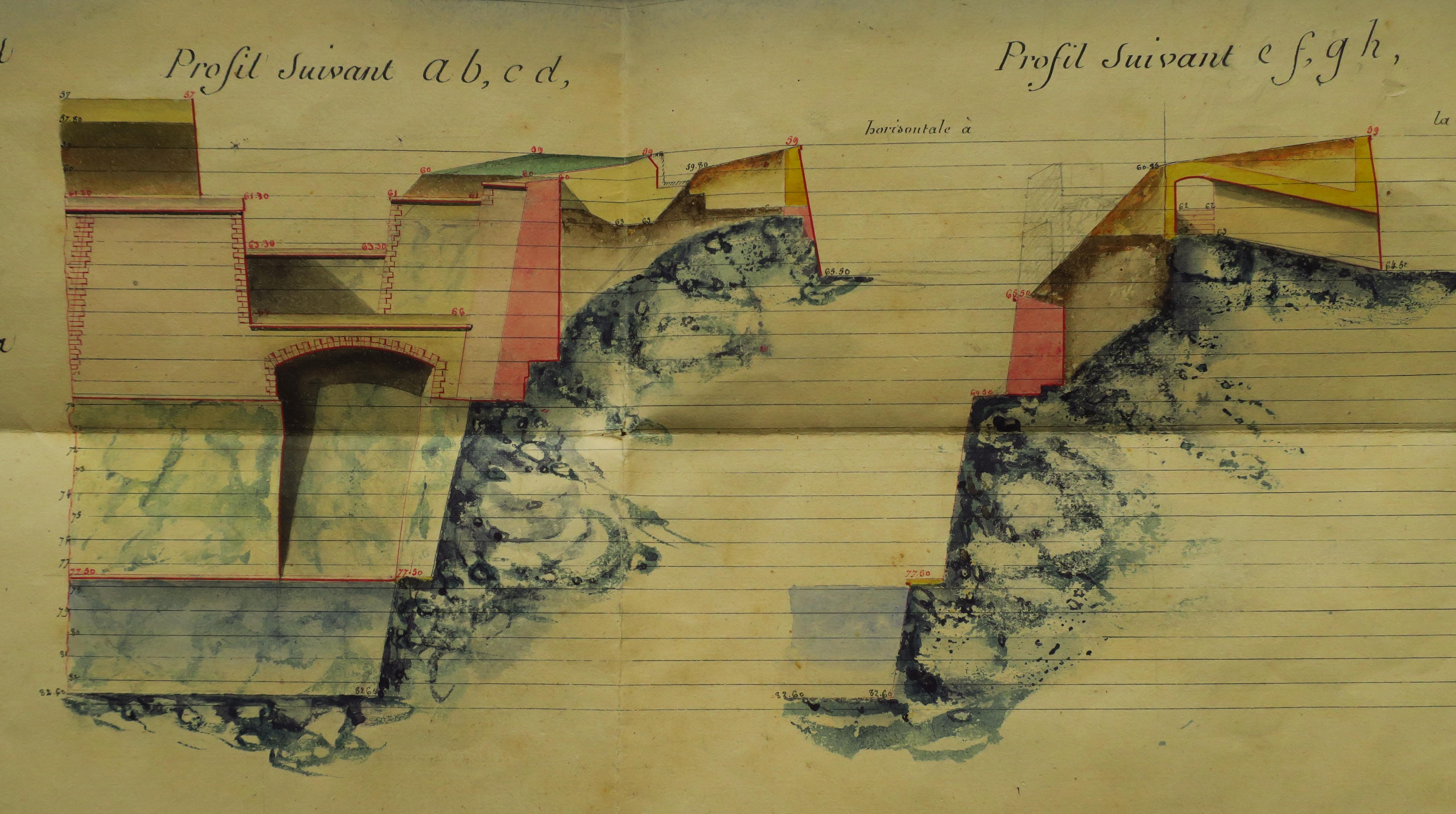 Service historique de la Défense, département Armée de Terre, Vincennes. Archives du Génie ; Article 8, Places françaises et d'Algérie : 1 VH 290, Place de Belle-Île-en-Mer, projets et dépenses annuels, 1837-1842. Direction du Génie de Nantes, Place de Belle-Ile, feuille n° 4 des projets pour 1840, amélioration de la citadelle, front 1-2, 16 décembre 1839.