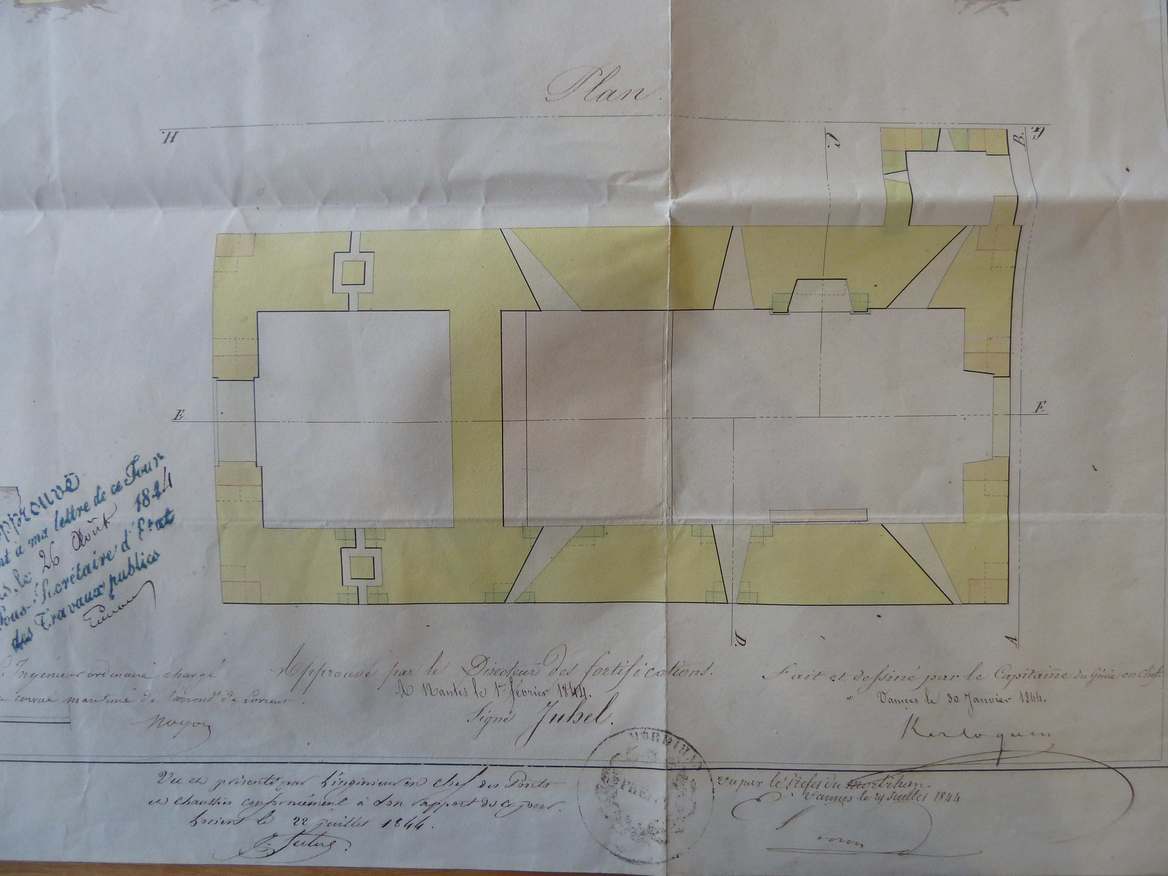 4 S 1290. Direction du Génie de Nantes, Place de Quiberon, Projet de construction d'un nouveau corps de garde près de la batterie de Port Haliguen, 30 janvier 1844.Immatriculation