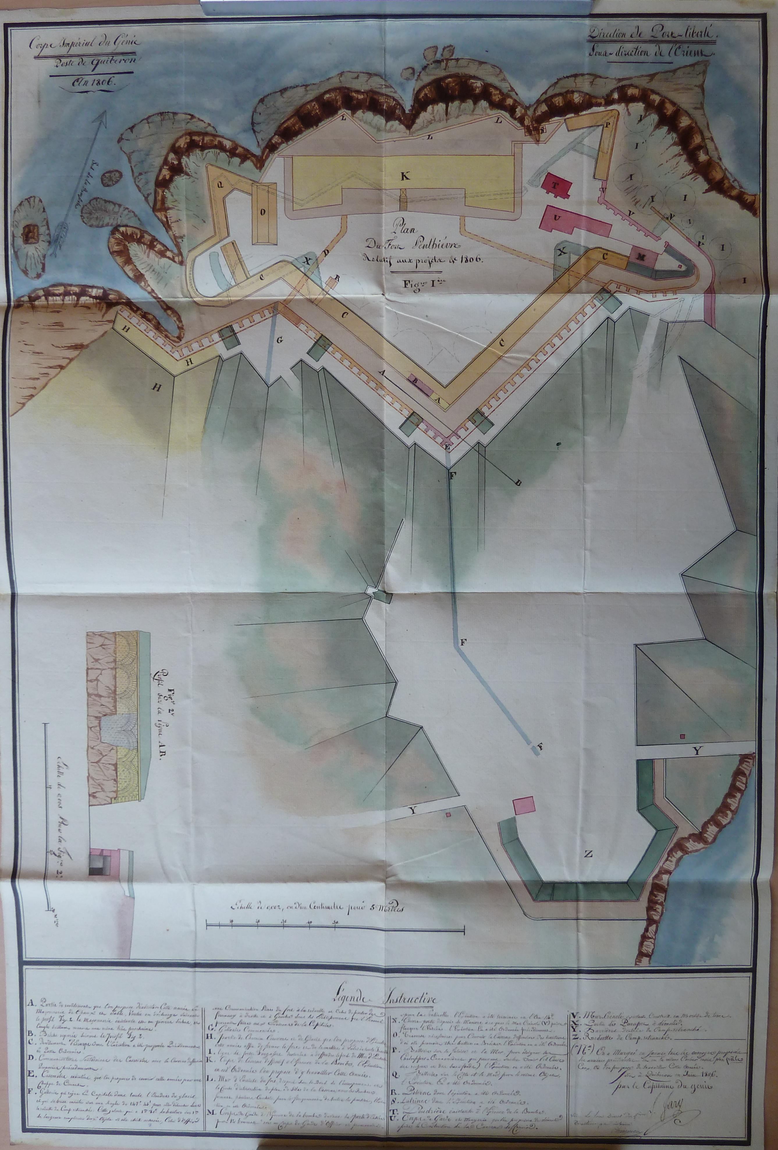 Service historique de la Défense, département Armée de Terre, Vincennes. Archives du Génie ; Article 8, Places françaises et d'Algérie : 1 VH 1515, Place de Quiberon, projets et dépenses annuels, 1747-1822. Direction du Génie de Port-Liberté, Poste de Quiberon, plan du fort Penthièvre relatif aux projets de 1806, juin 1806.