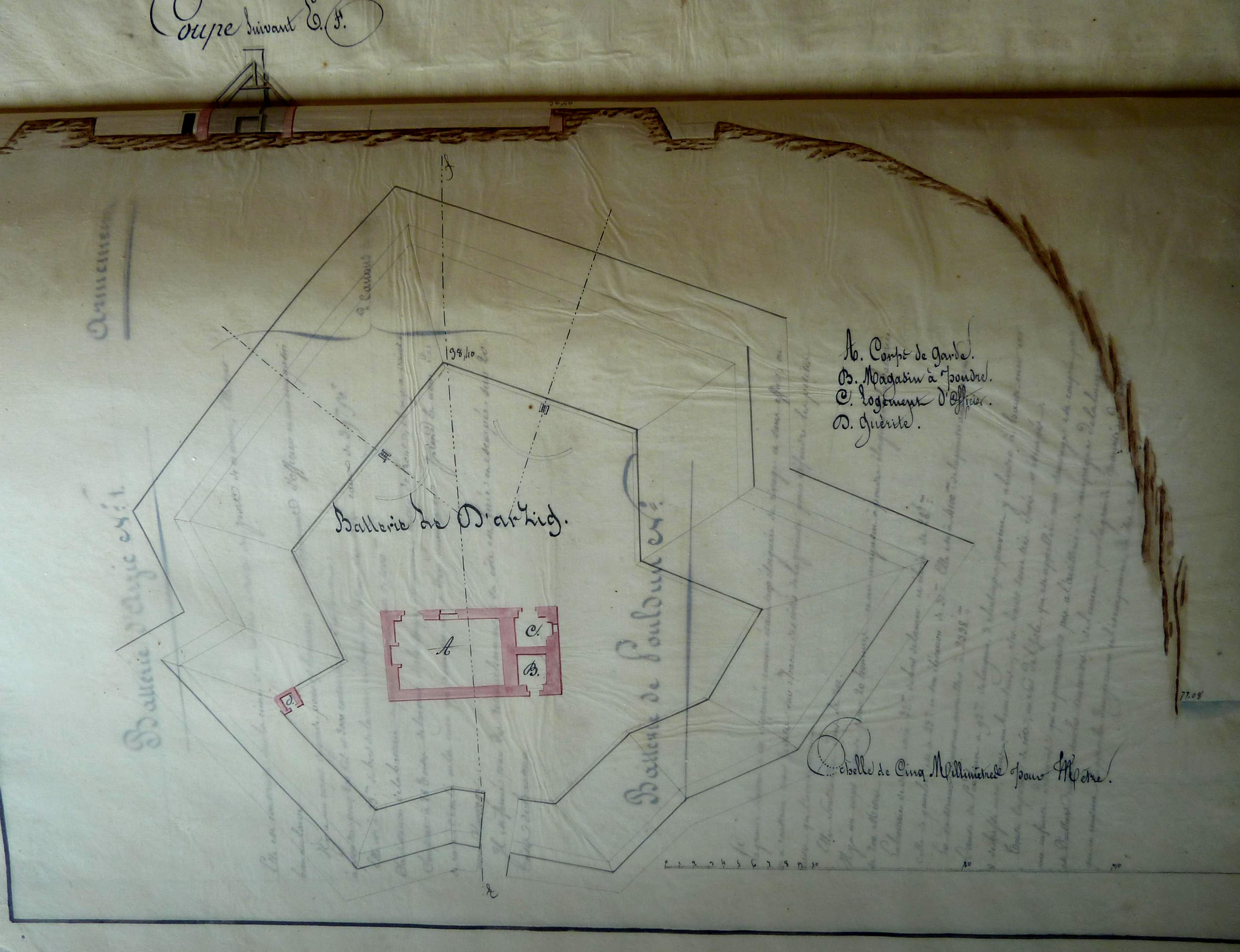 Archives départementales du Morbihan. Série Fi, Documents figurés ; 1 Fi 304, Notes topographiques, historiques et militaires sur chaque fort, redoute et batterie de la côte de Belle-Isle-en-mer, 1824.