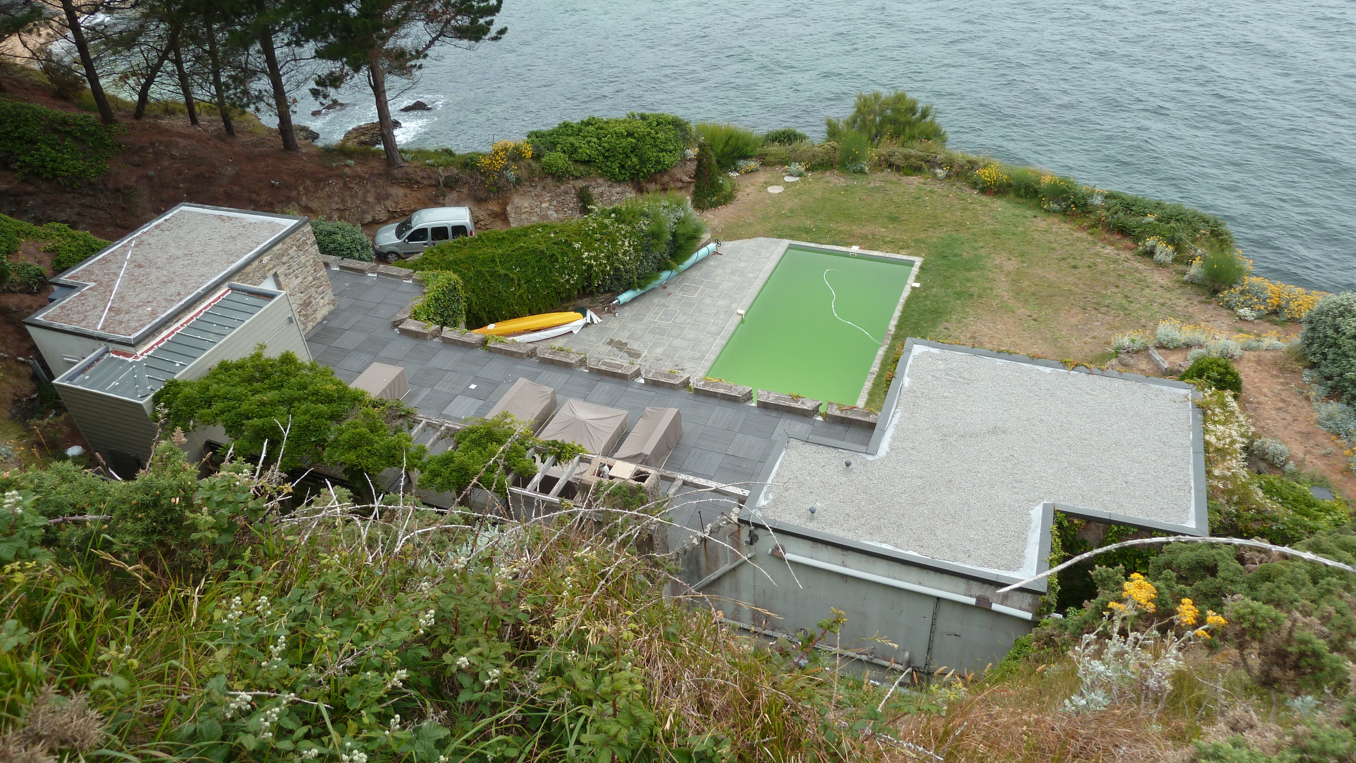 Locmaria, batterie de la pointe d'Arzic, la plate-forme de la batterie basse et le corps de garde crénelé.Immatriculation