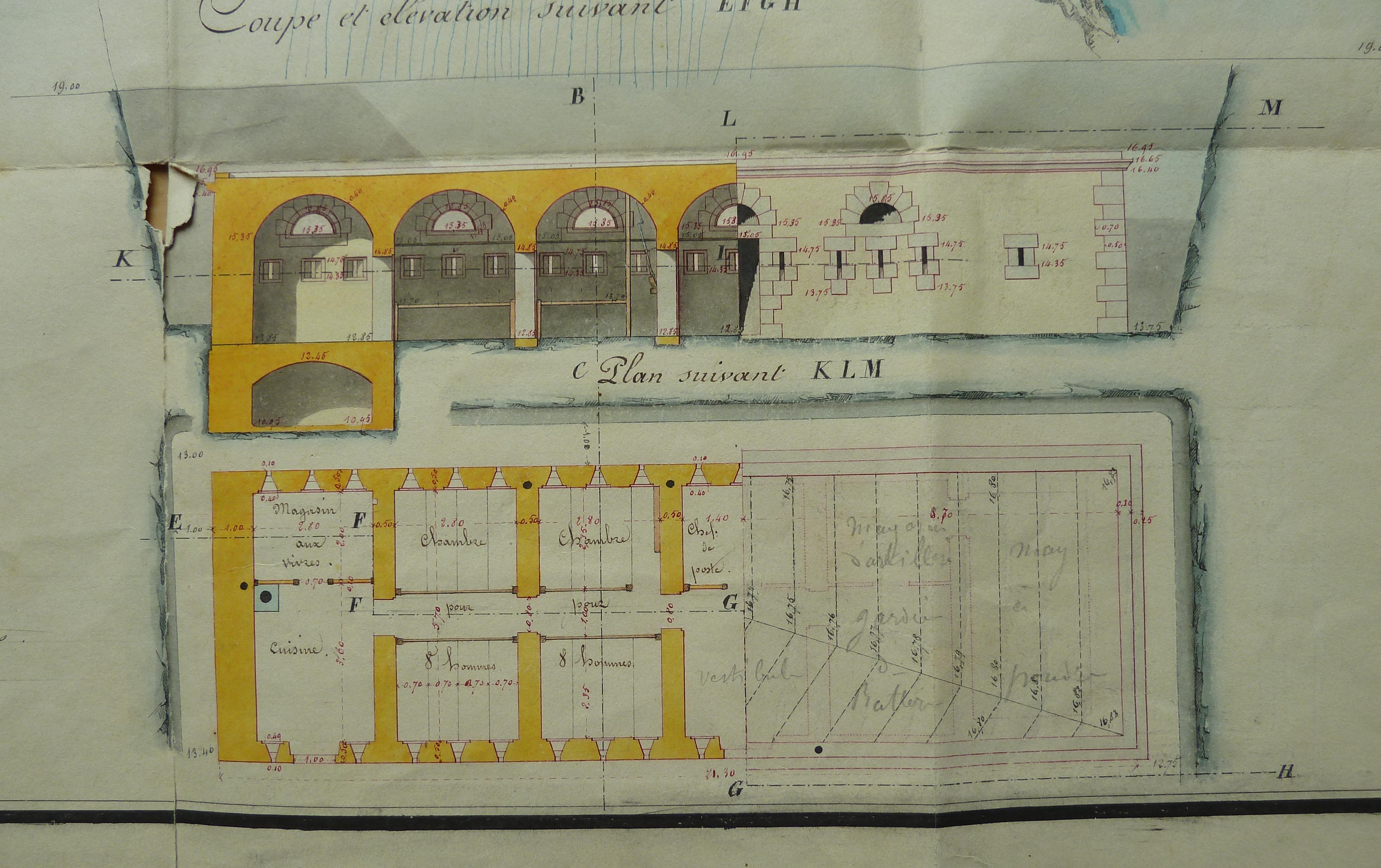 Service historique de la Défense, département Armée de Terre, Vincennes. Archives du Génie ; Article 8, Places françaises et d'Algérie : 1 VH 296, Place de Belle-Île-en-Mer, projets et dépenses annuels, 1860-1861. Direction du Génie de Brest, Place de Belle-Ile, feuille n° 1 des projets pour 1860-1861, 20 novembre 1859.