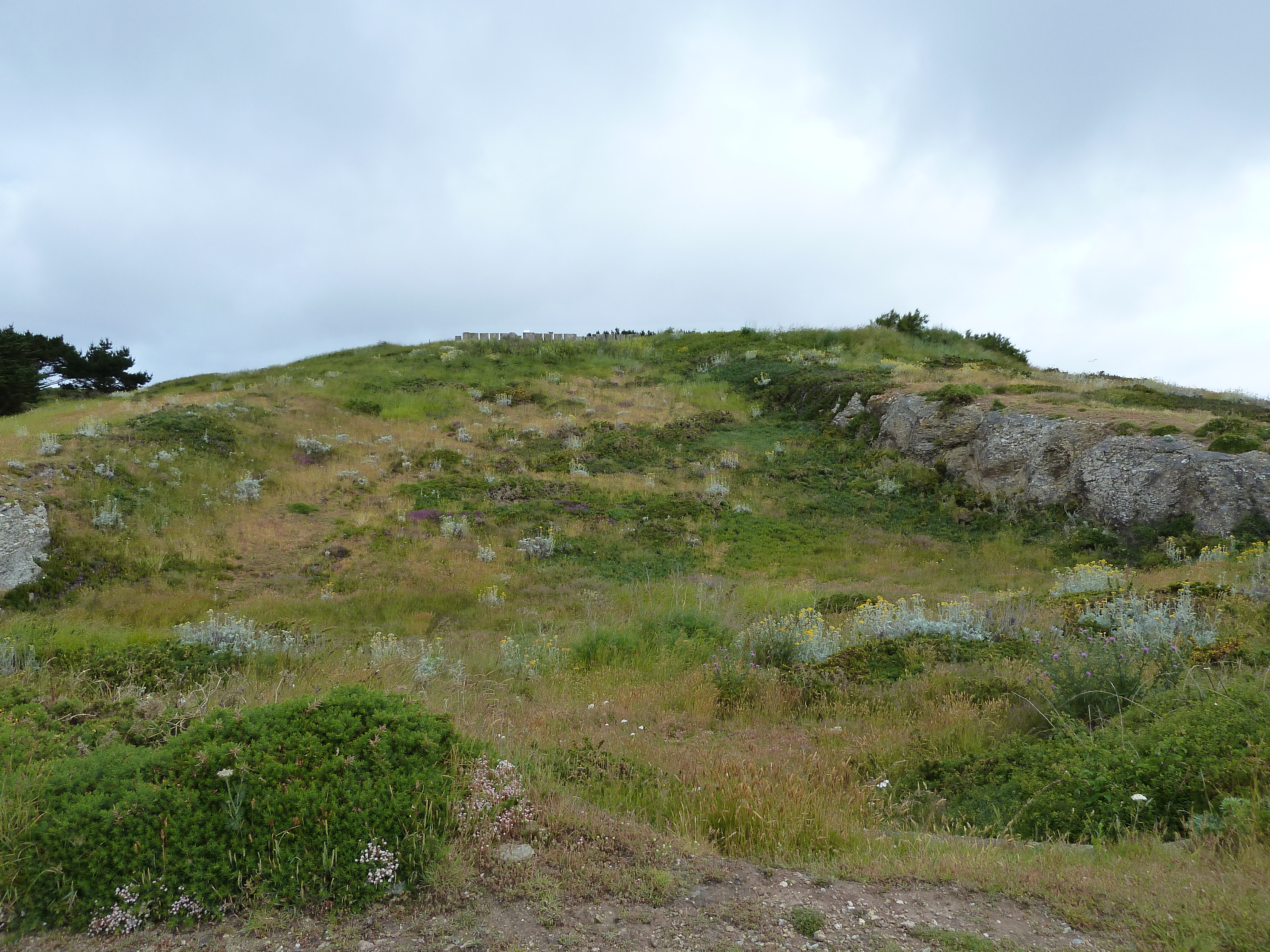 Locmaria, batterie de Kerdonis, glacis entre la batterie et le corps de garde crénelé.Immatriculation