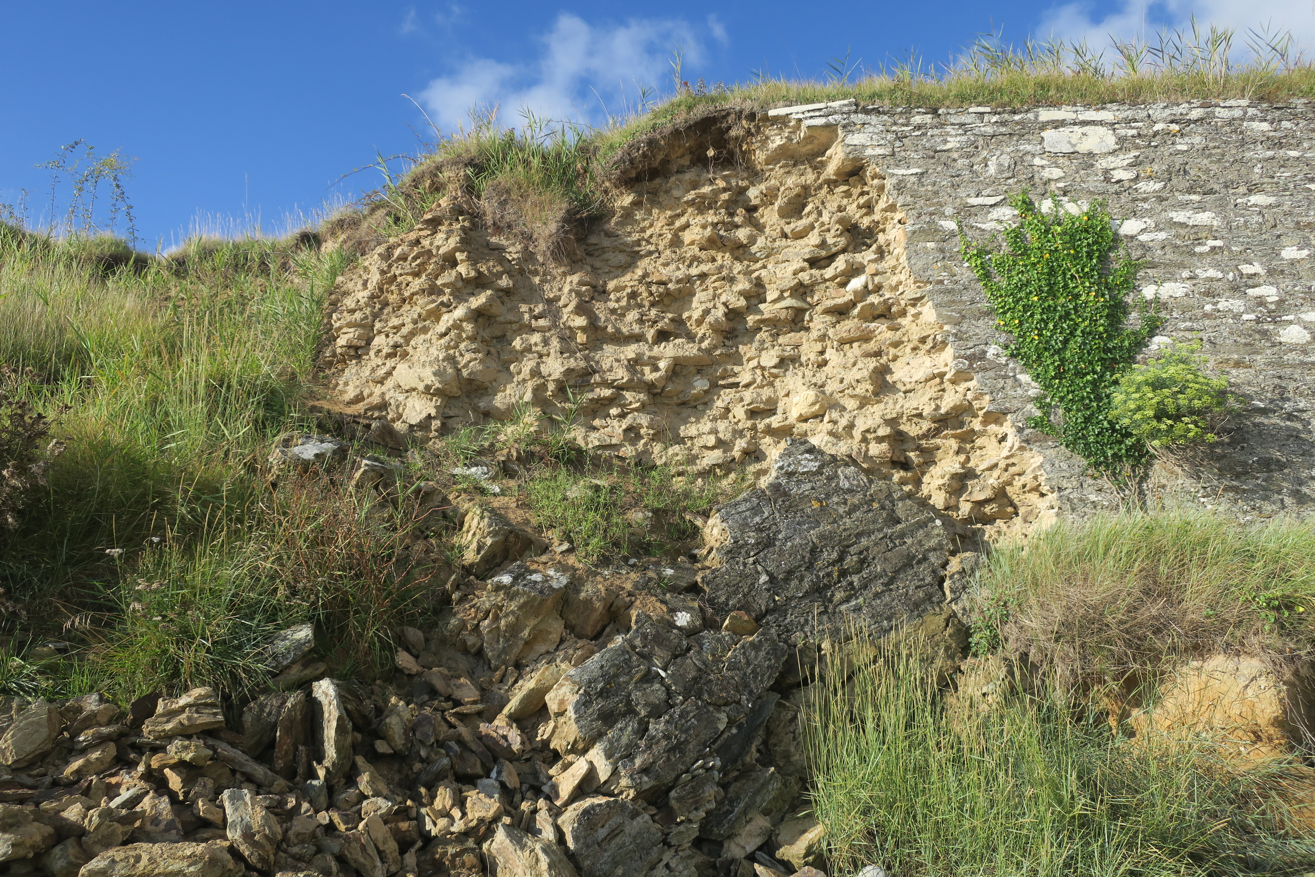 Locmaria, Grands Sables, dégâts sur l'escarpe.Immatriculation