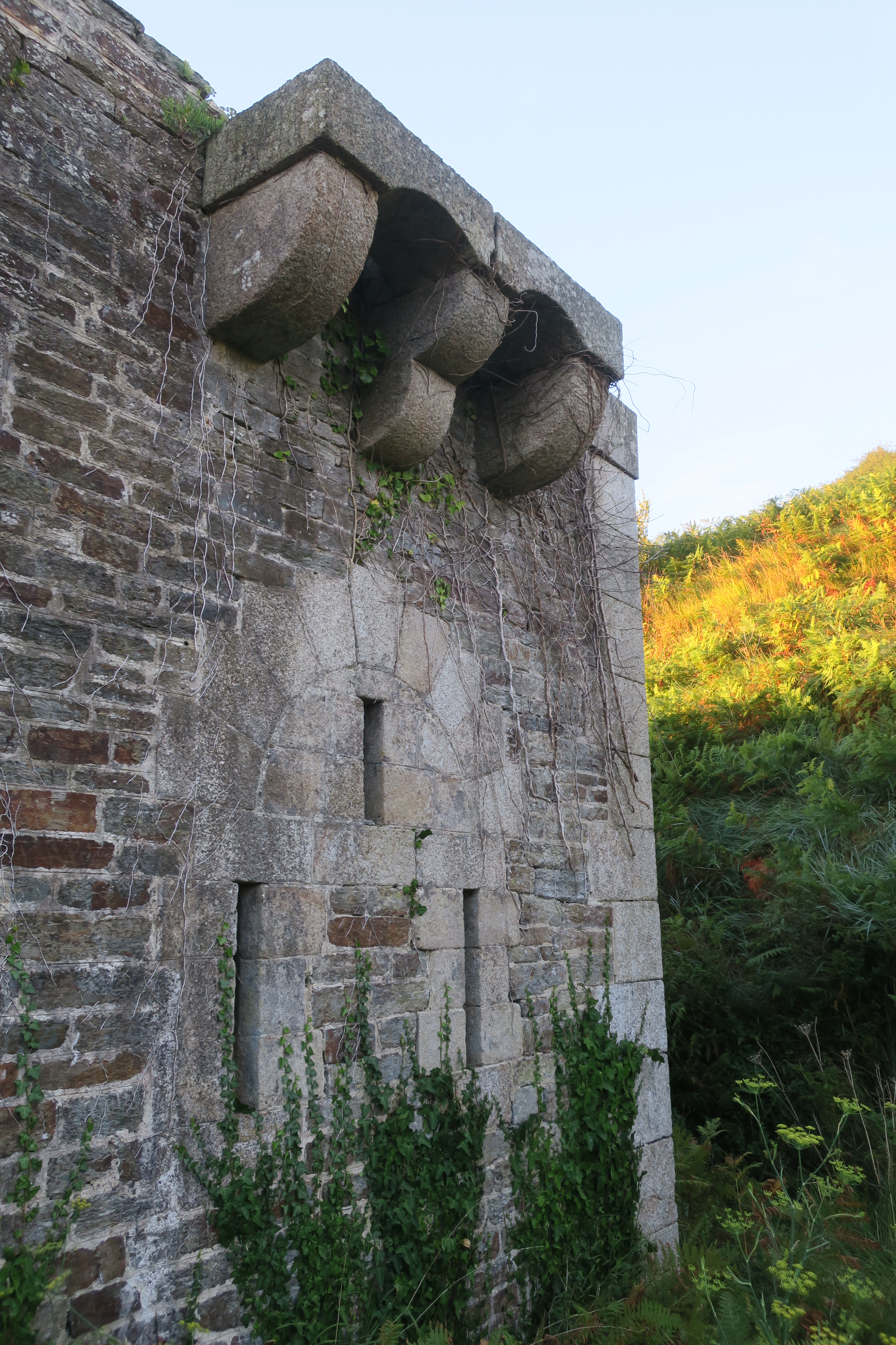 Locmaria, Grands Sables, batterie de La Ferrière, corps de garde crénelé, détail de la façade ouest.Immatriculation