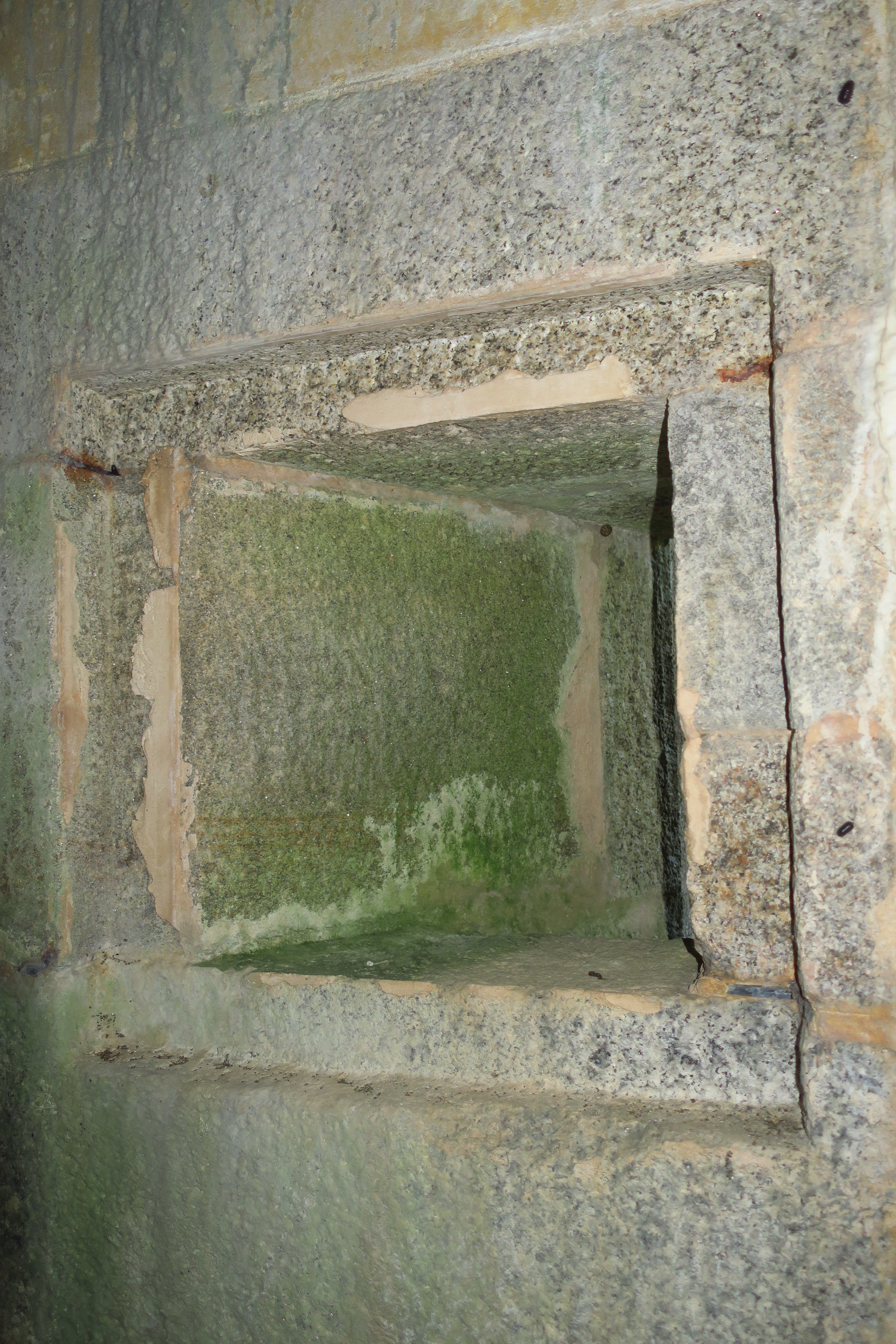 Locmaria, Grands Sables, batterie de La Ferrière, corps de garde crénelé, créneau de tir.Immatriculation