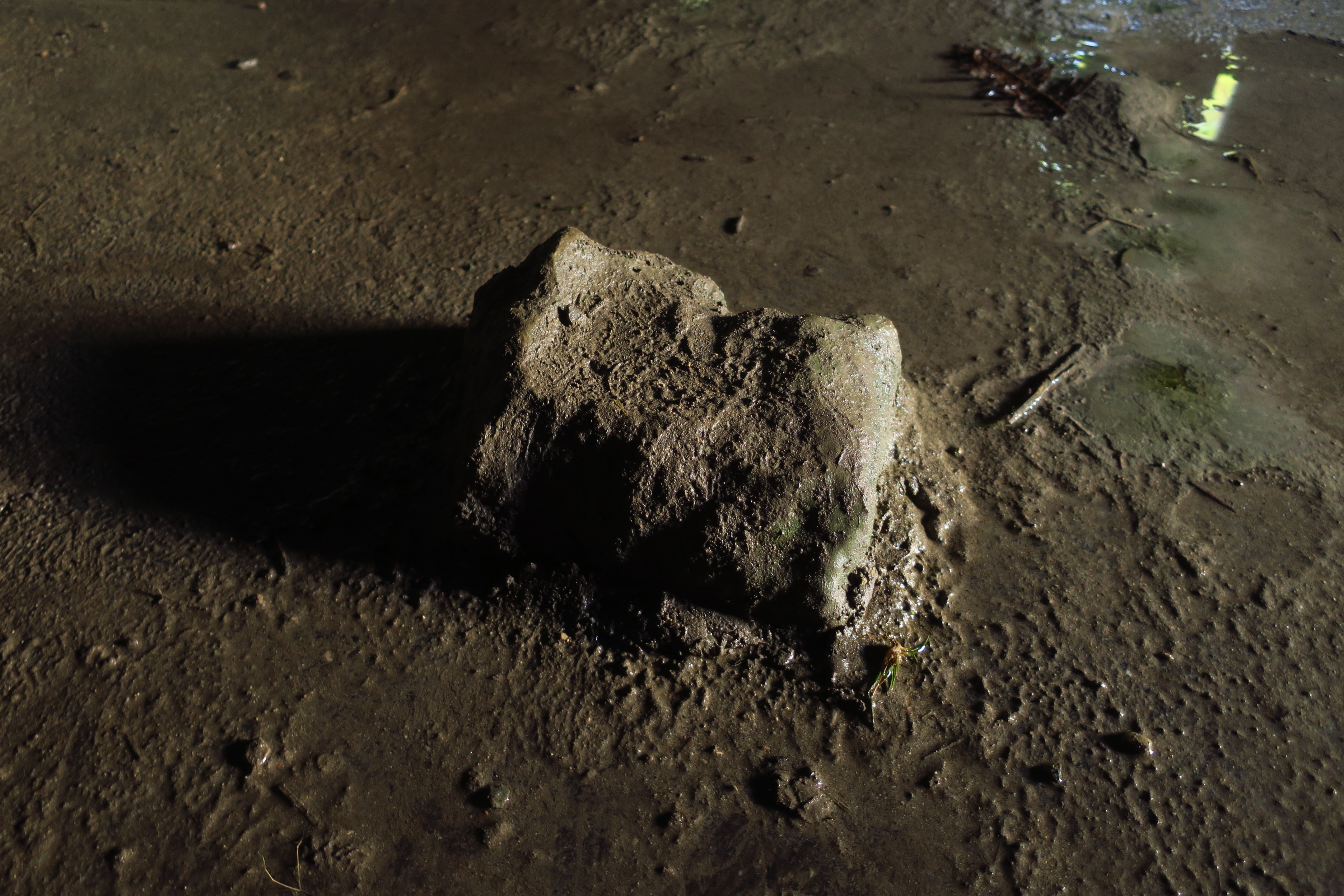 Locmaria, Grands Sables, batterie de La Ferrière, corps de garde crénelé, assise de poteau de hamac.Immatriculation