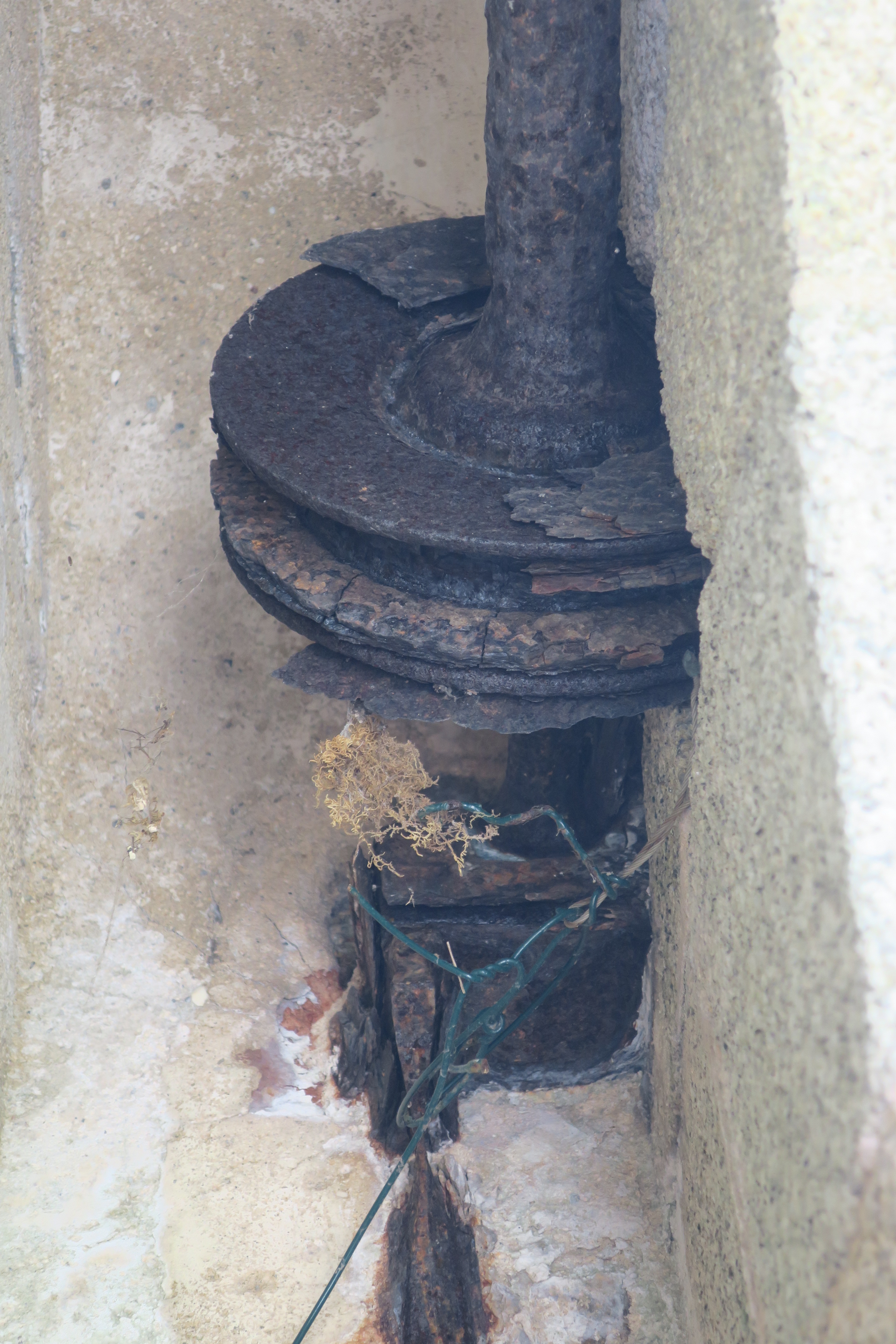 Le Palais, Port Larron, corps de garde crénelé, détail du mécanisme du pont-levis.Immatriculation