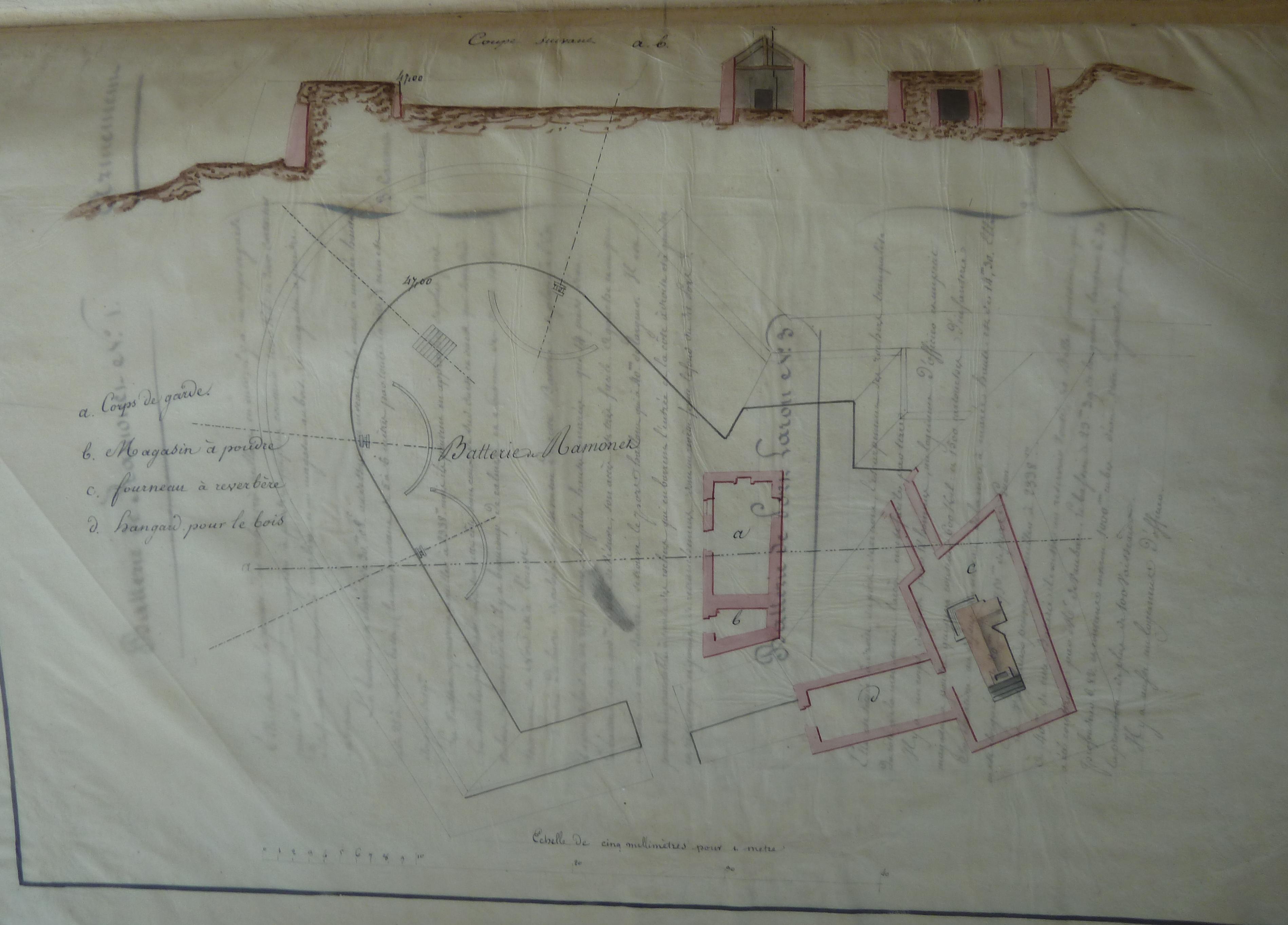 Archives départementales du Morbihan. Série Fi, Documents figurés ; 1 Fi 304, Notes topographiques, historiques et militaires sur chaque fort, redoute et batterie de la côte de Belle-Isle-en-mer, 1824.