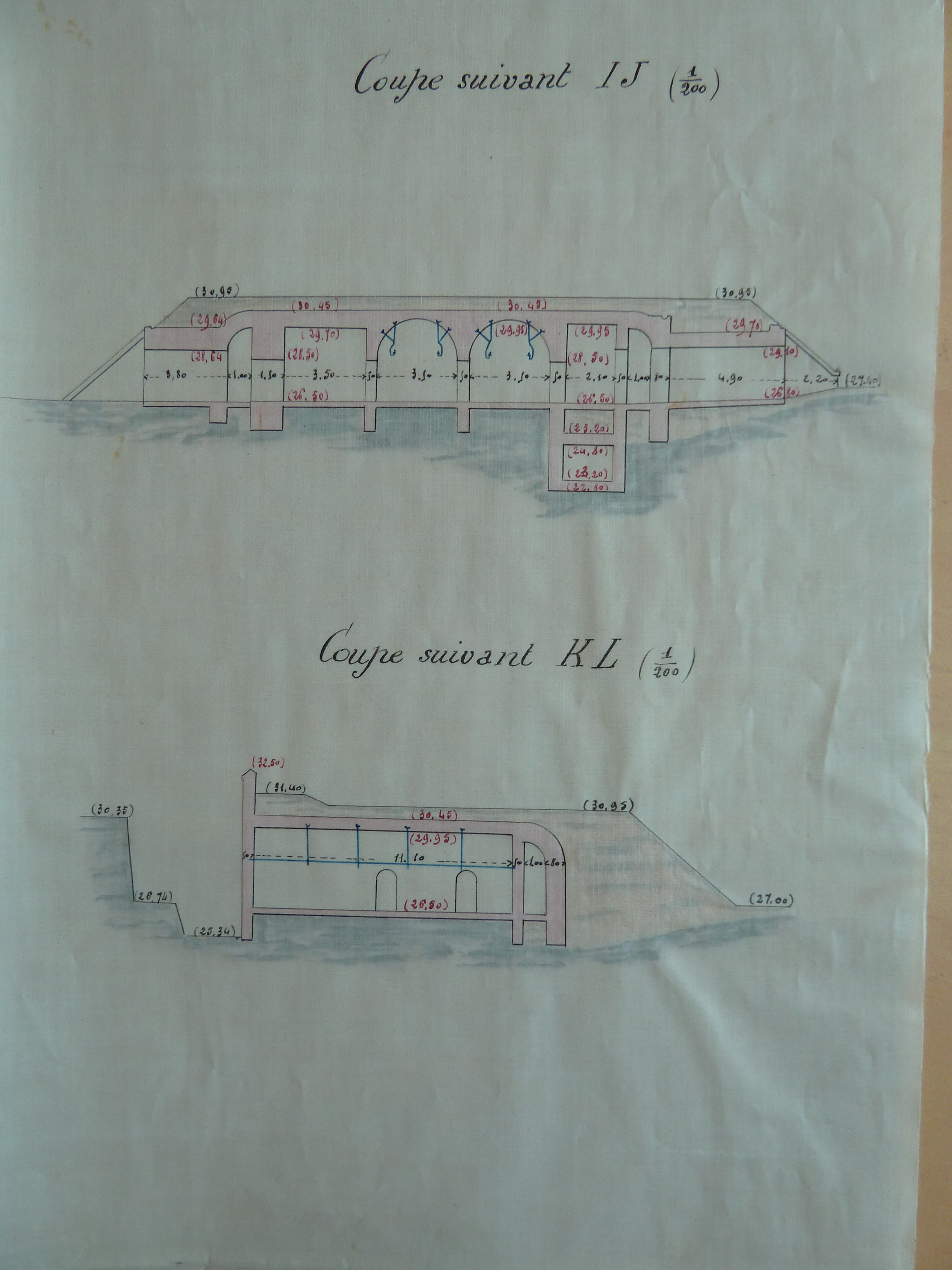 Service historique de la Défense, Département Armée de Terre, Vincennes. Archives de la Guerre, Troisième République ; Sous-série 7 N, État-major de l'Armée : 7 N 1904, Défense des fronts de mer, dossiers de l’inspection générale permanente d’armement des côtes - Atlantique : pièces collectives, Belle-Ile, Blaye, Bordeaux, Brest (1878-1912). Croquis joint au procès-verbal de conférence en date du 30 décembre 1894 relatif à l'emmagasinement des munitions dans les batteries de côte de Belle-Ile.