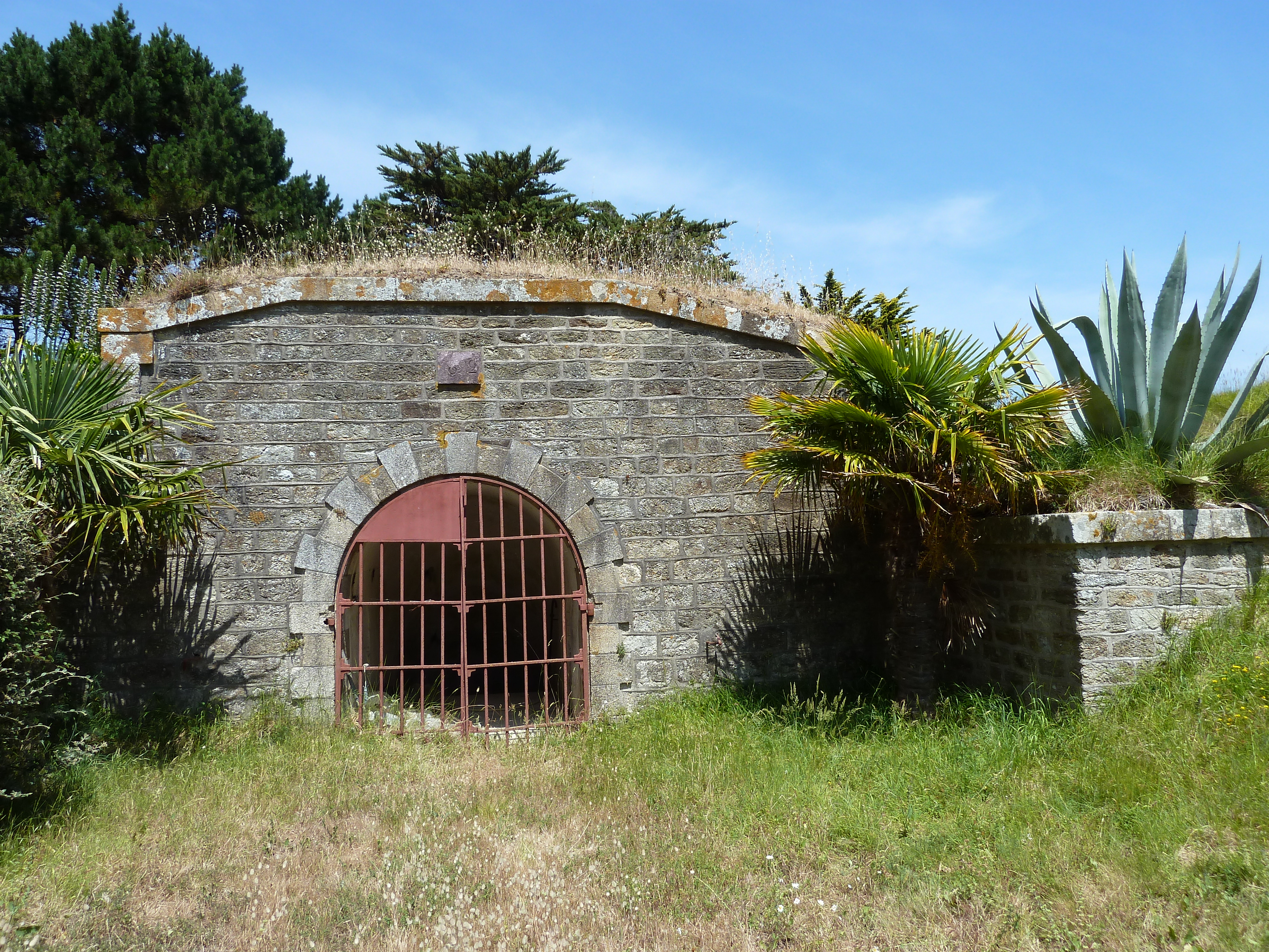 Le Palais, batterie du Gros Rocher, débouché de l'escalier du magasin à poudre souterrain.Immatriculation
