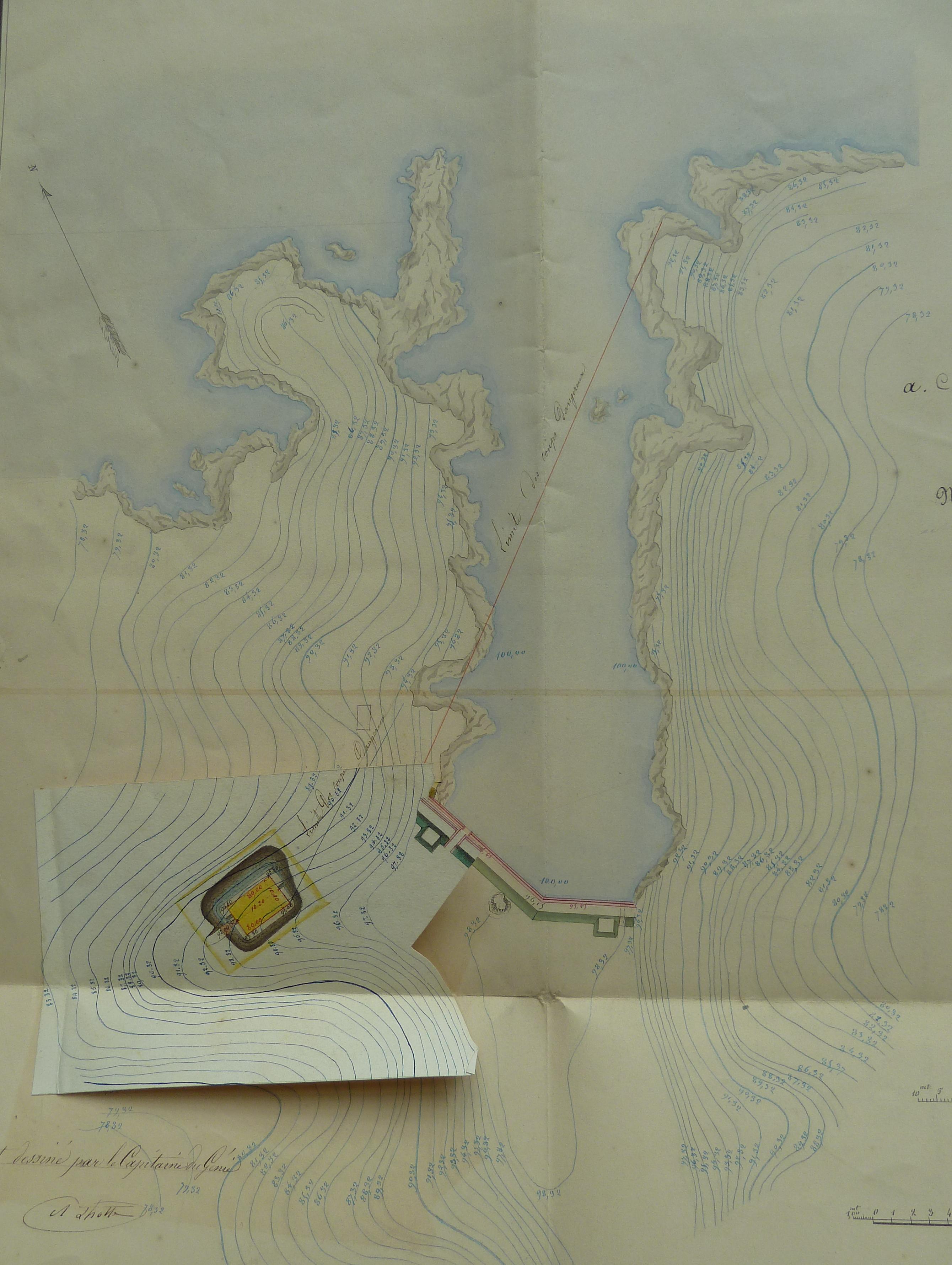 Service historique de la Défense, département Armée de Terre, Vincennes. Archives du Génie ; Article 8, Places françaises et d'Algérie : 1 VH 294, Place de Belle-Île-en-Mer, projets et dépenses annuels, 1854-1857. Direction du Génie de Brest, Place de Belle-Ile, feuille n° 14 des projets extraordinaires pour 1857-1858, 19 février 1857 [papillotte de correction du 18 mars 1857].