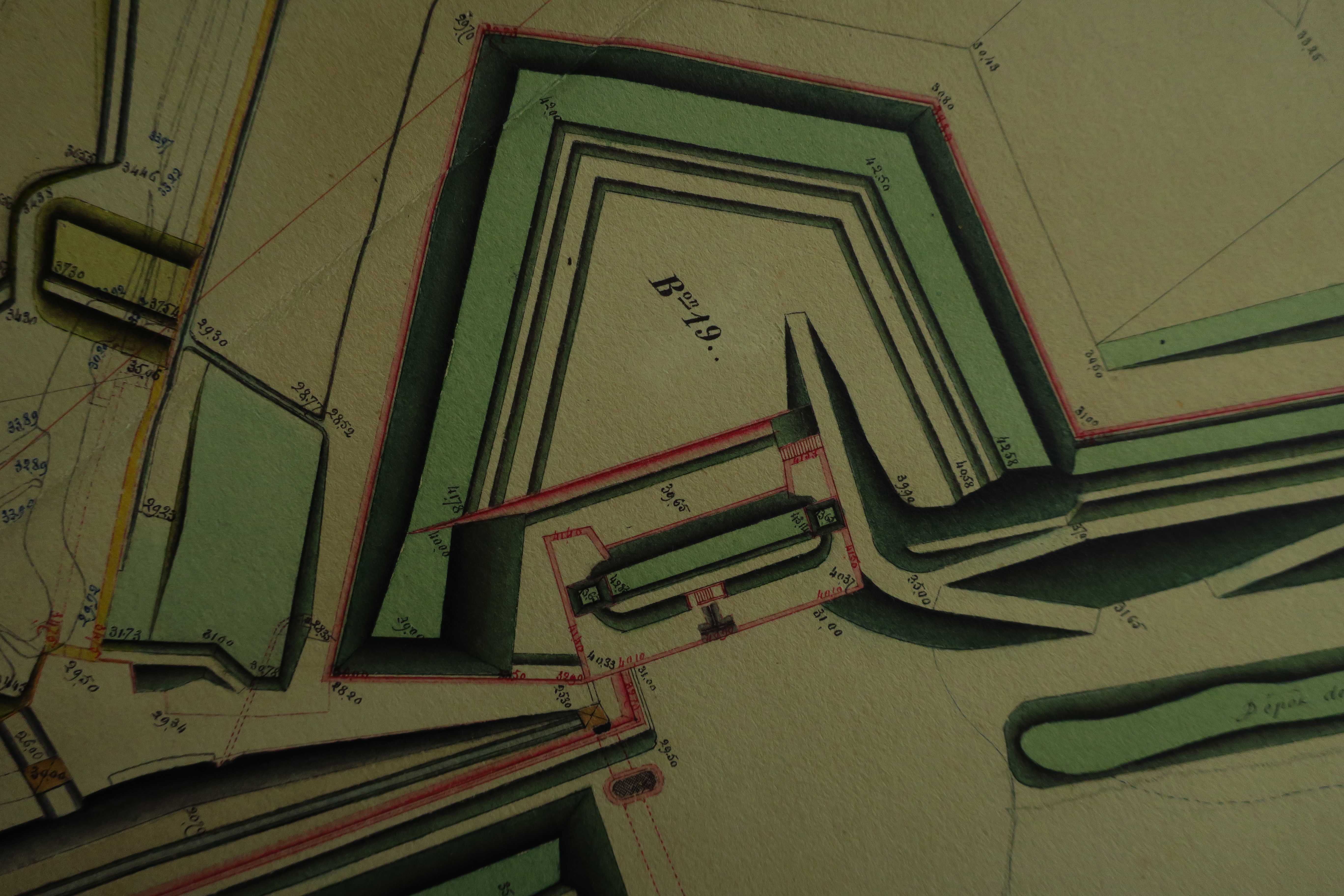 Service historique de la Défense, département Armée de Terre, Vincennes. Archives du Génie ; Article 8, Places françaises et d'Algérie : 1 VH 297, Place de Belle-Île-en-Mer, projets et dépenses annuels, 1862-1875. Direction du Génie de Brest, Place de Belle-Ile, feuille n° 1 des projets pour 1868-1869, 22 avril 1868.