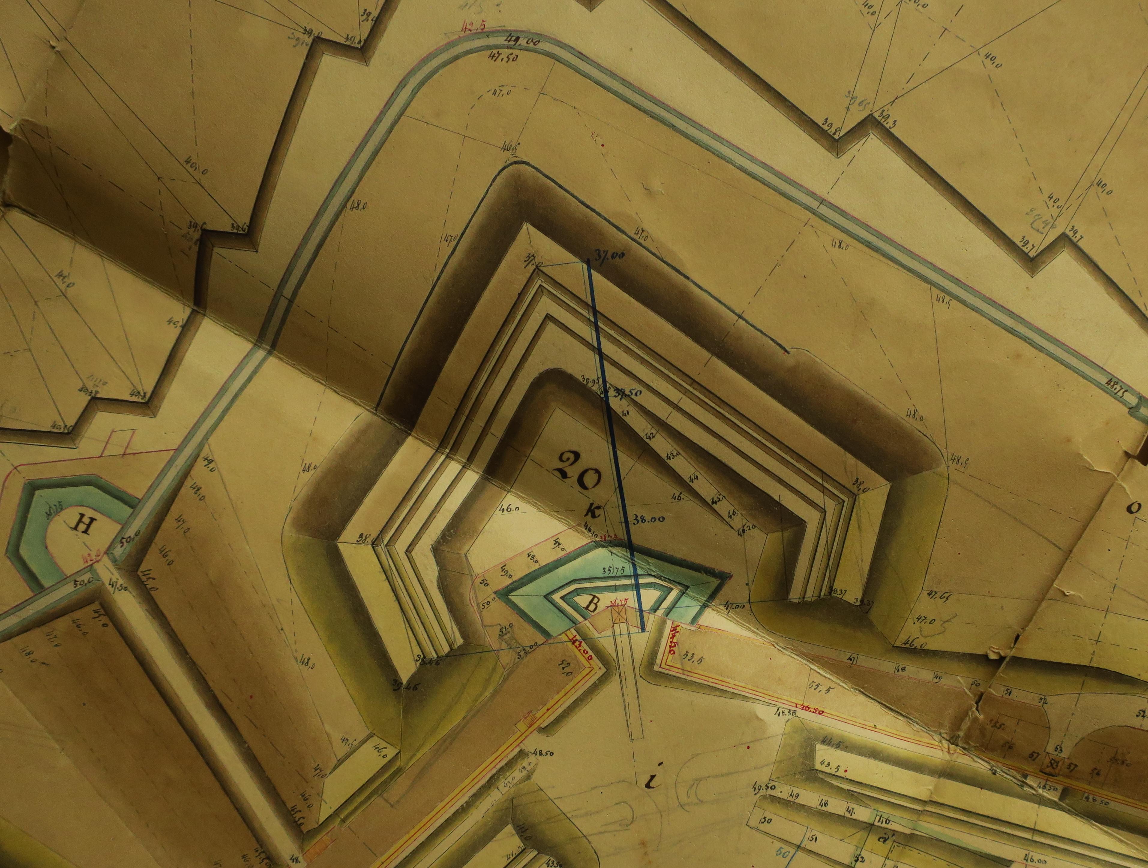 Service historique de la Défense, département Armée de Terre, Vincennes. Archives du Génie ; Article 8, Places françaises et d'Algérie : 1 VH 294, Place de Belle-Île-en-Mer, projets et dépenses annuels, 1854-1857. Direction du Génie de Brest, Place de Belle-Ile, feuille n° 3 des projets pour 1854-1855, enceinte de Palais, 11 février 1854.
