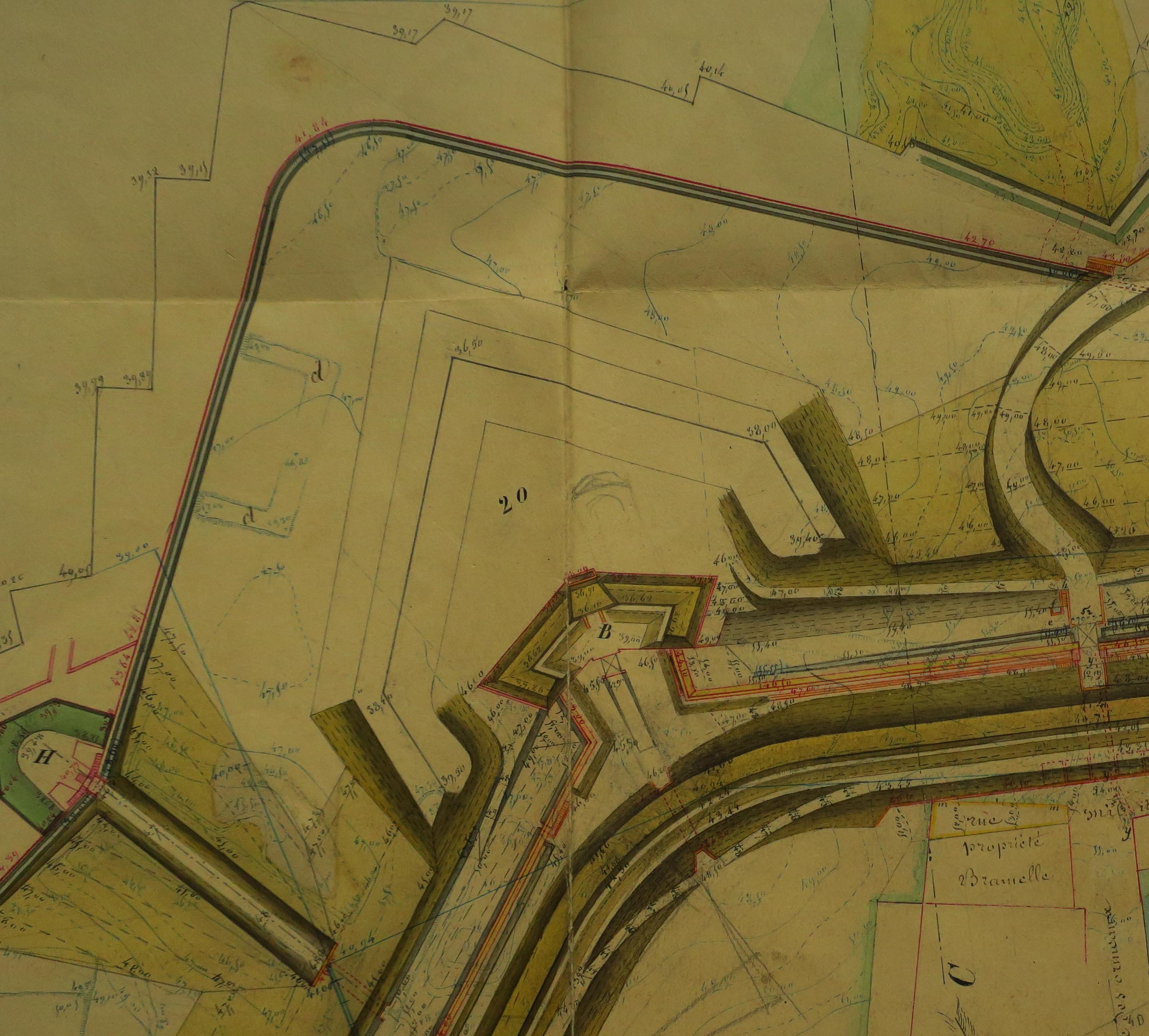 Service historique de la Défense, département Armée de Terre, Vincennes. Archives du Génie ; Article 8, Places françaises et d'Algérie : 1 VH 294, Place de Belle-Île-en-Mer, projets et dépenses annuels, 1854-1857. Direction du Génie de Brest, Place de Belle-Ile, feuille n° 2 des projets pour 1856-1857, 25 novembre 1855.
