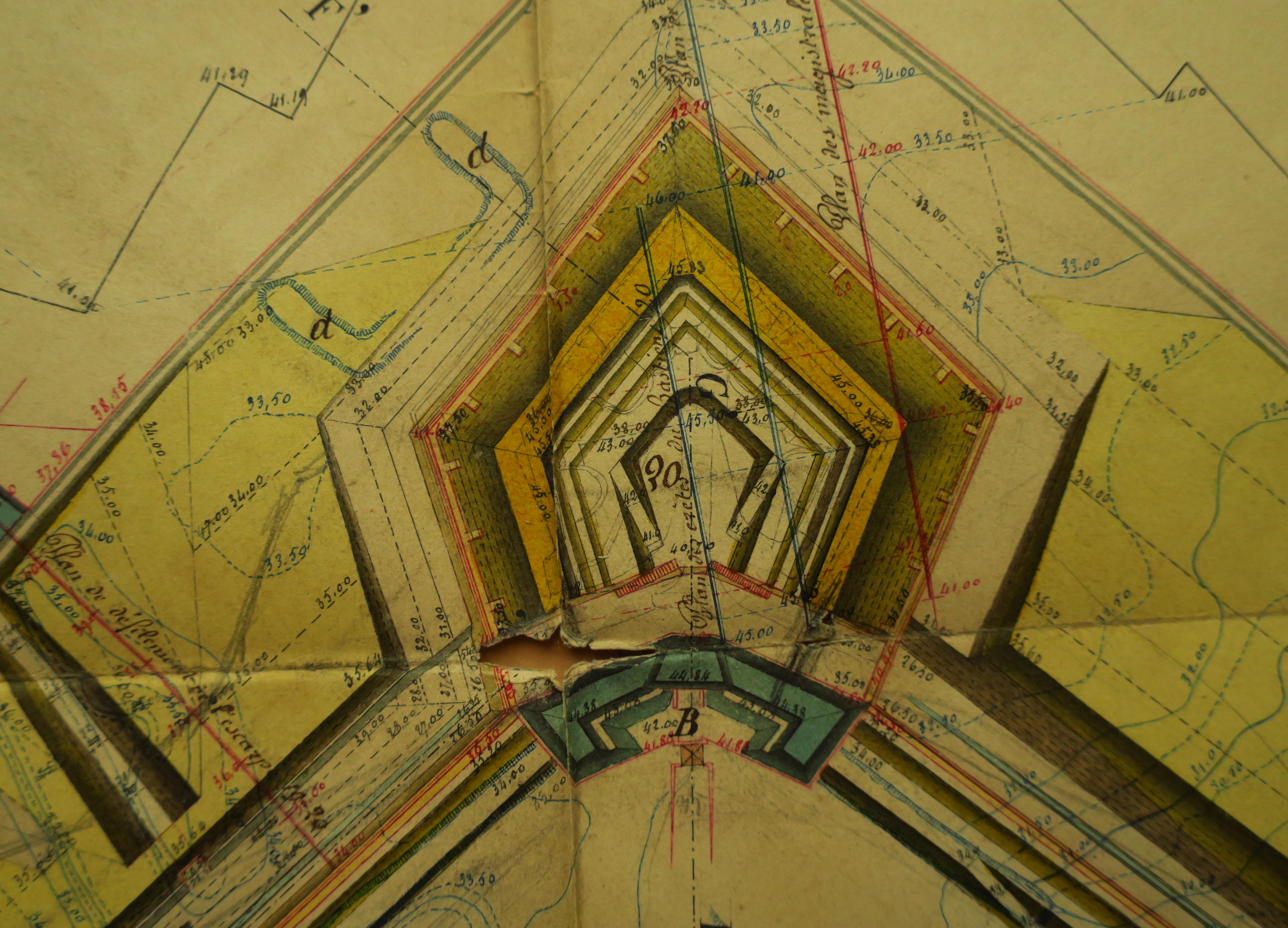 Service historique de la Défense, département Armée de Terre, Vincennes. Archives du Génie ; Article 8, Places françaises et d'Algérie : 1 VH 295, Place de Belle-Île-en-Mer, projets et dépenses annuels, 1858-1859. Direction du Génie de Brest, Place de Belle-Ile, feuille n° 6 des projets pour 1858-1859, 29 décembre 1857.