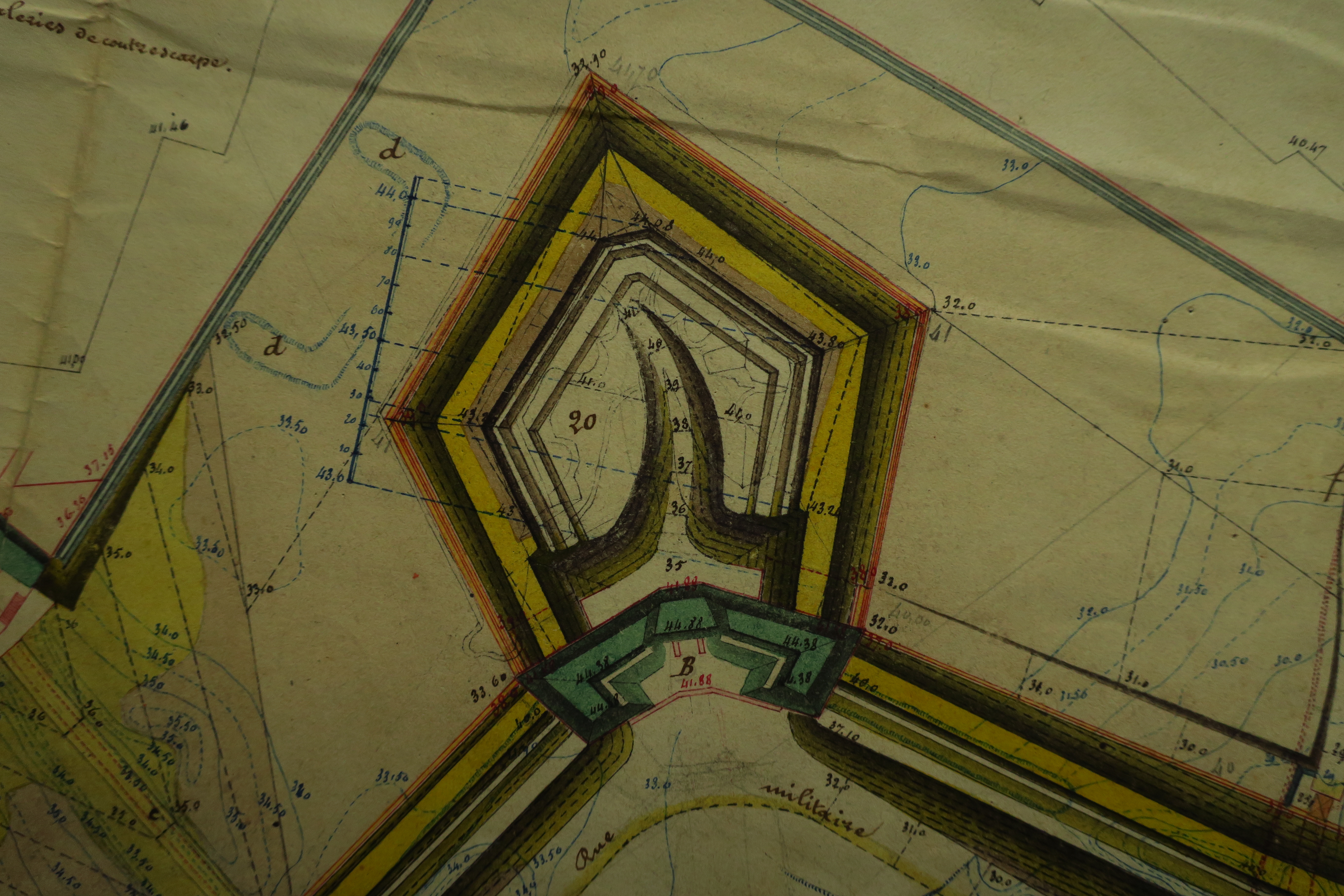 Service historique de la Défense, département Armée de Terre, Vincennes. Archives du Génie ; Article 8, Places françaises et d'Algérie : 1 VH 296, Place de Belle-Île-en-Mer, projets et dépenses annuels, 1860-1861. Direction du Génie de Brest, Place de Belle-Ile, feuille n° 12 des projets pour 1860-1861, 24 octobre 1860.