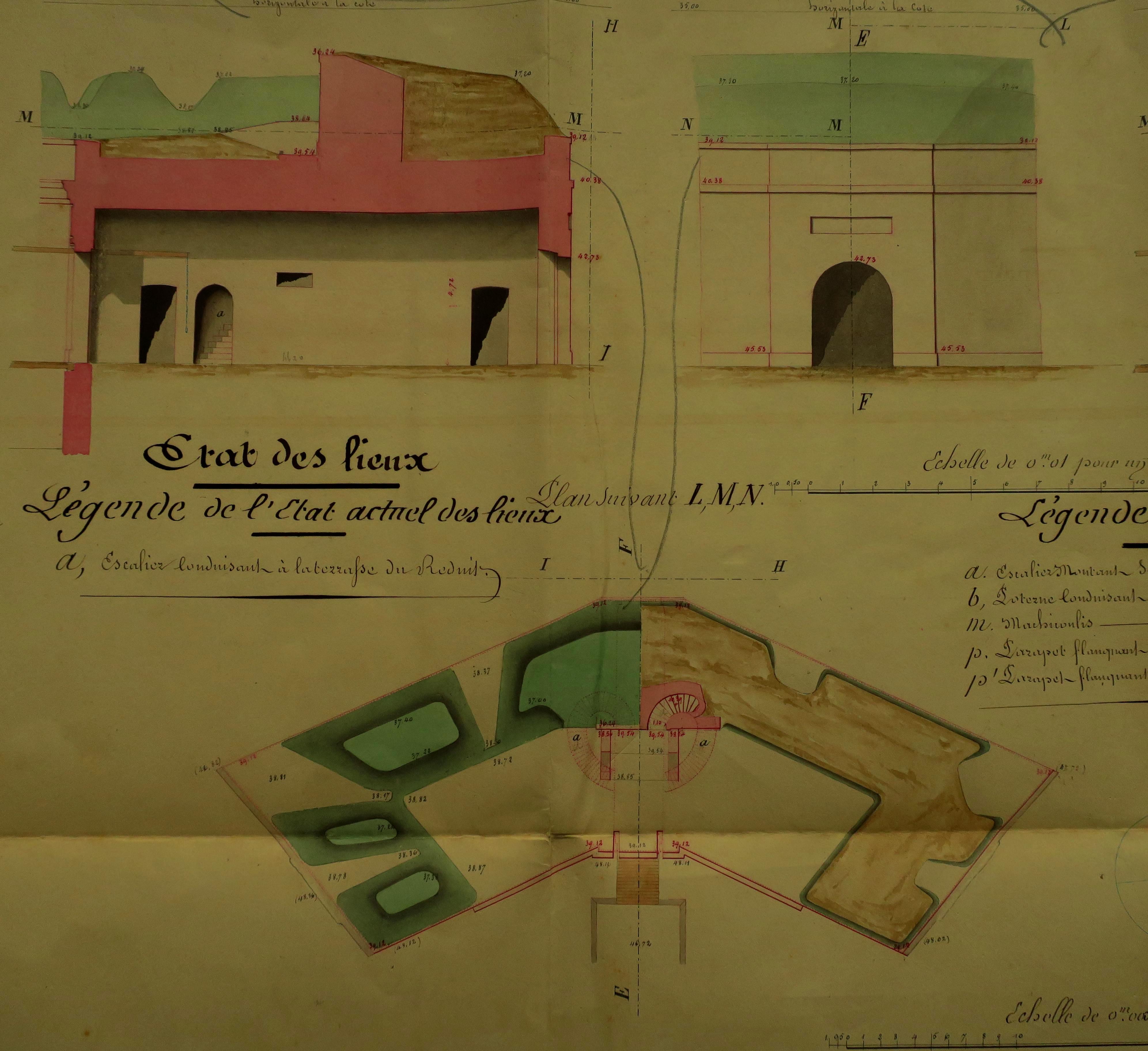 Service historique de la Défense, département Armée de Terre, Vincennes. Archives du Génie ; Article 8, Places françaises et d'Algérie : 1 VH 294, Place de Belle-Île-en-Mer, projets et dépenses annuels, 1854-1857. Direction du Génie de Brest, Place de Belle-Ile, feuille n° 3 des projets pour 1856-1857, 25 novembre 1855.