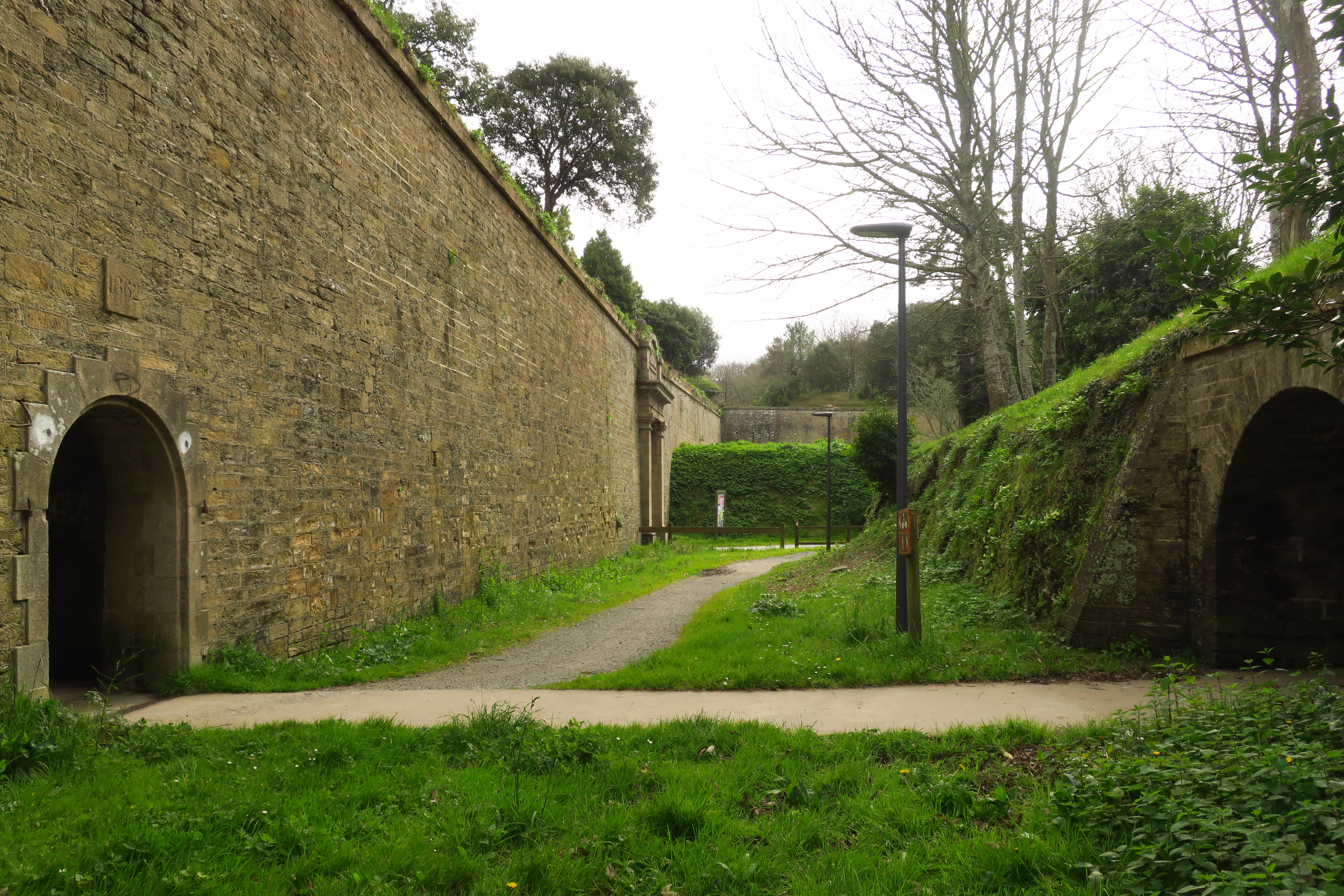 Le Palais, enceinte urbaine, courtine 20-21, escarpe, tenaille et poterne.Immatriculation