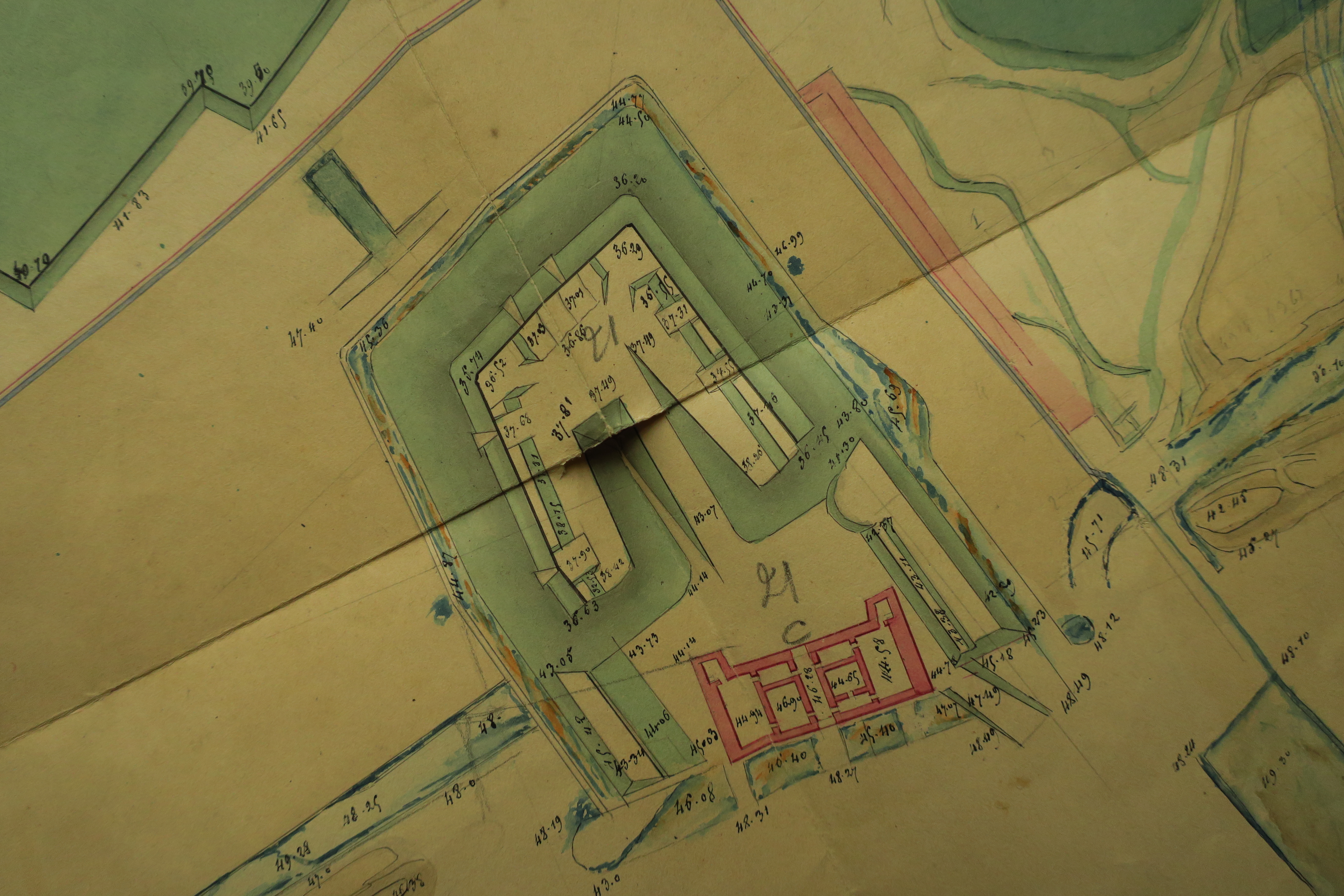 Service historique de la Défense, département Armée de Terre, Vincennes. Archives du Génie ; Article 8, Places françaises et d'Algérie : 1 VH 294, Place de Belle-Île-en-Mer, projets et dépenses annuels, 1854-1857. Direction du Génie de Brest, Place de Belle-Ile, feuille n° 2 des projets pour 1854-1855, état des lieux, 11 février 1854.