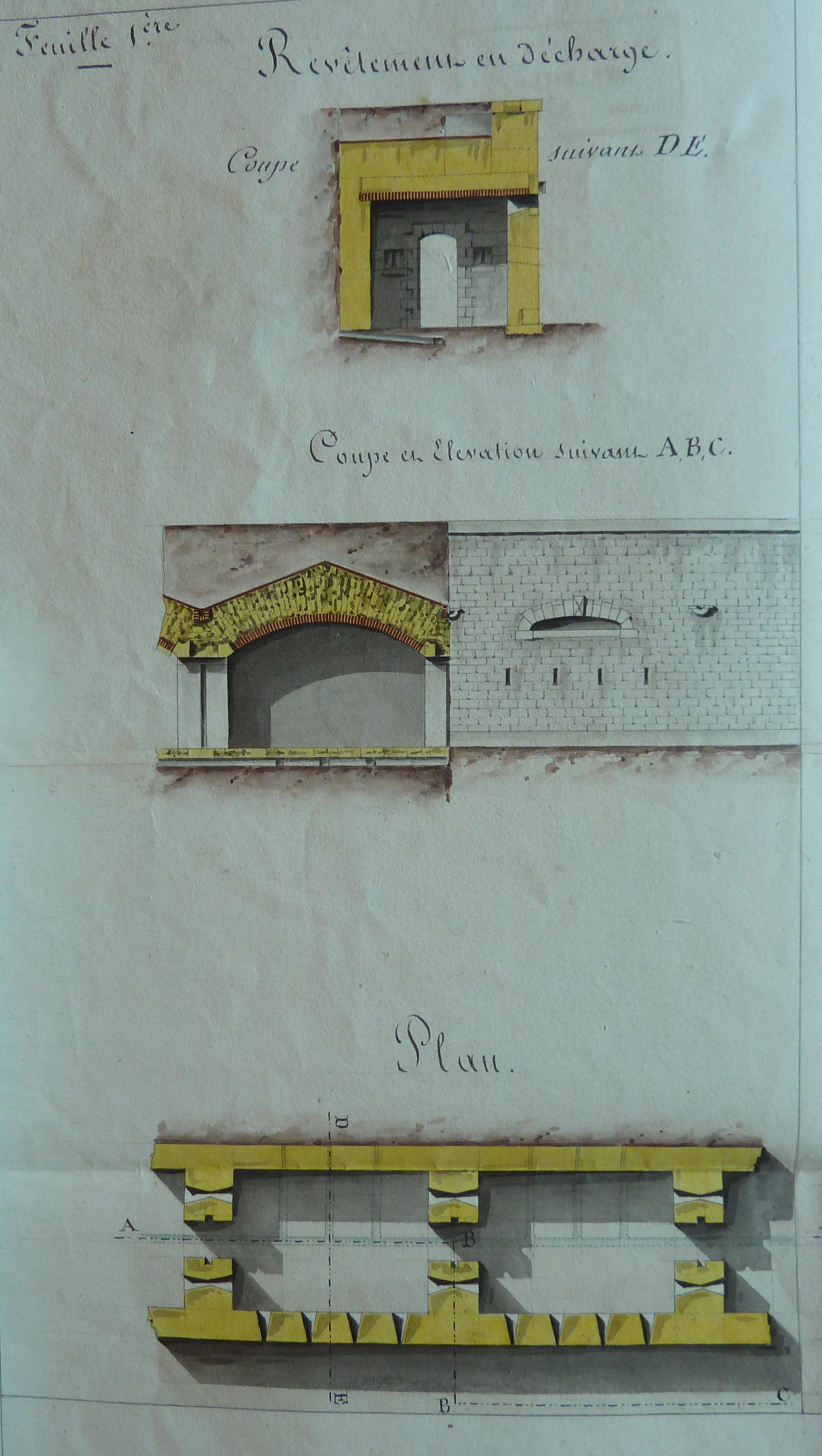 Service historique de la Défense, département Armée de Terre, Vincennes. Archives du Génie ; Article 8, Places françaises et d'Algérie : 1 VH 286, Place de Belle-Île-en-Mer, projets et dépenses annuels, 1807-1816. Direction du Génie de Port-Liberté, Place de Belle-Ile-en-Mer, divers projets de revêtement de contrescarpe, 2 novembre 1807.
