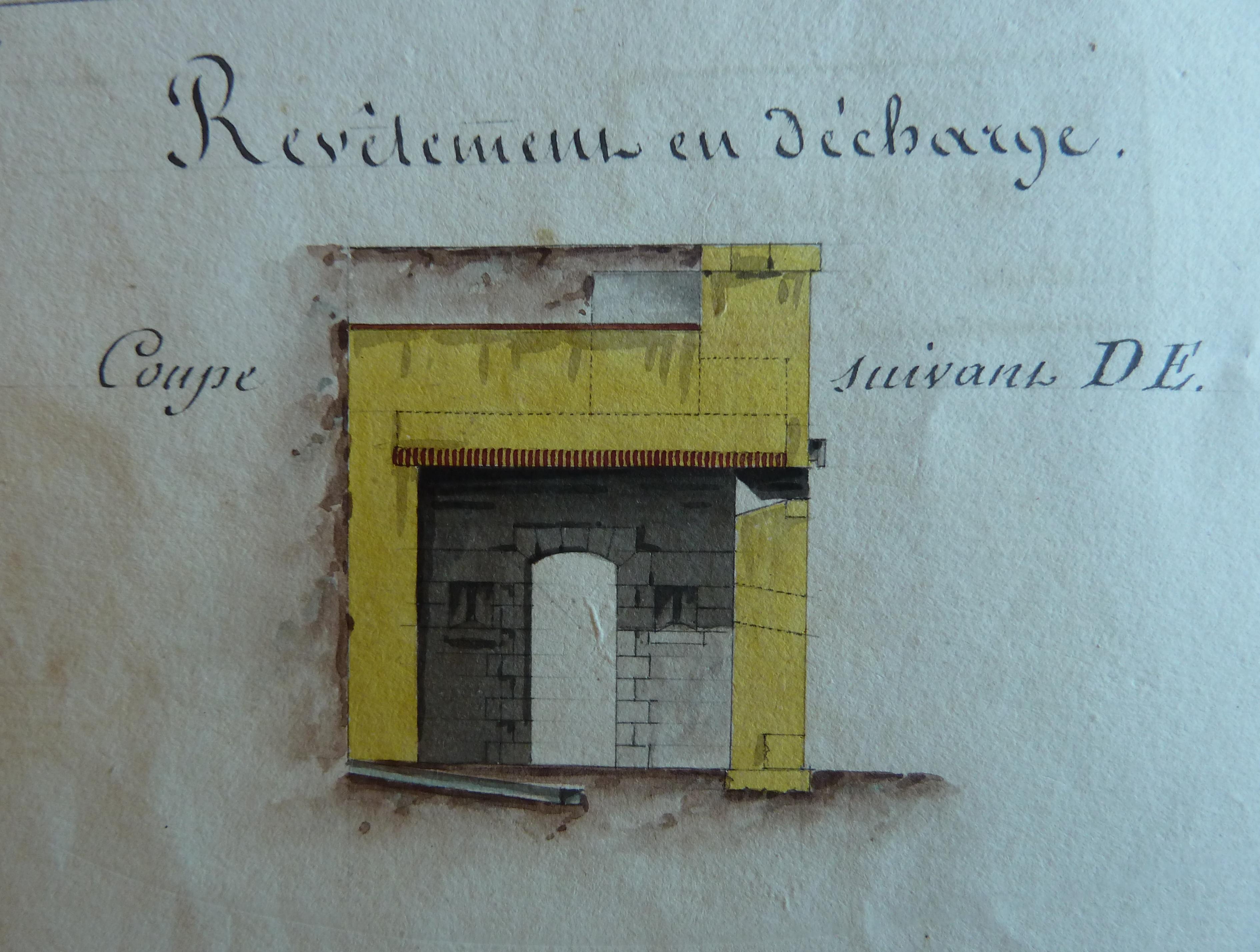Service historique de la Défense, département Armée de Terre, Vincennes. Archives du Génie ; Article 8, Places françaises et d'Algérie : 1 VH 286, Place de Belle-Île-en-Mer, projets et dépenses annuels, 1807-1816. Direction du Génie de Port-Liberté, Place de Belle-Ile-en-Mer, divers projets de revêtement de contrescarpe, 2 novembre 1807.